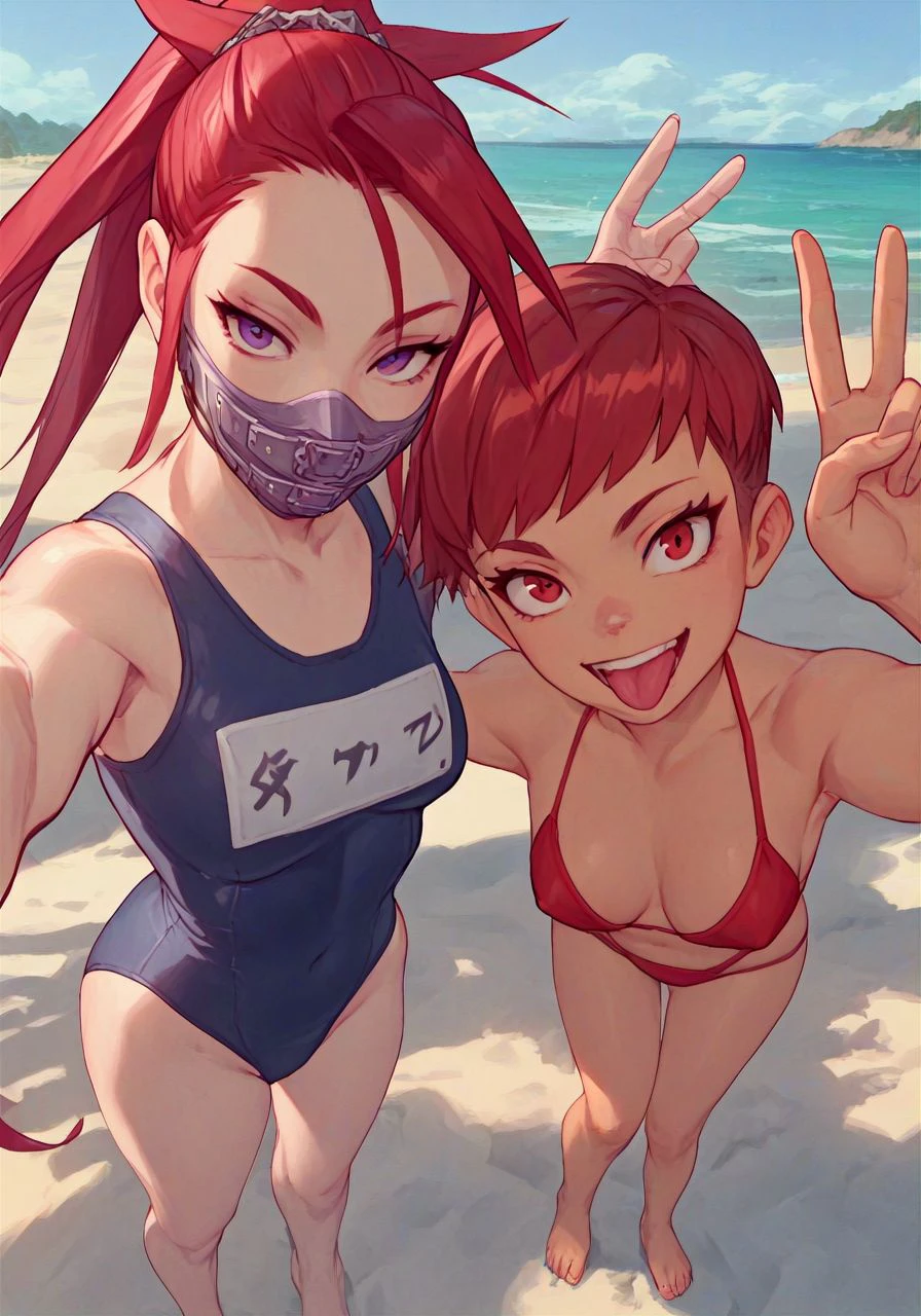 helper tags: red hair, ponytail, purple eyes, mask