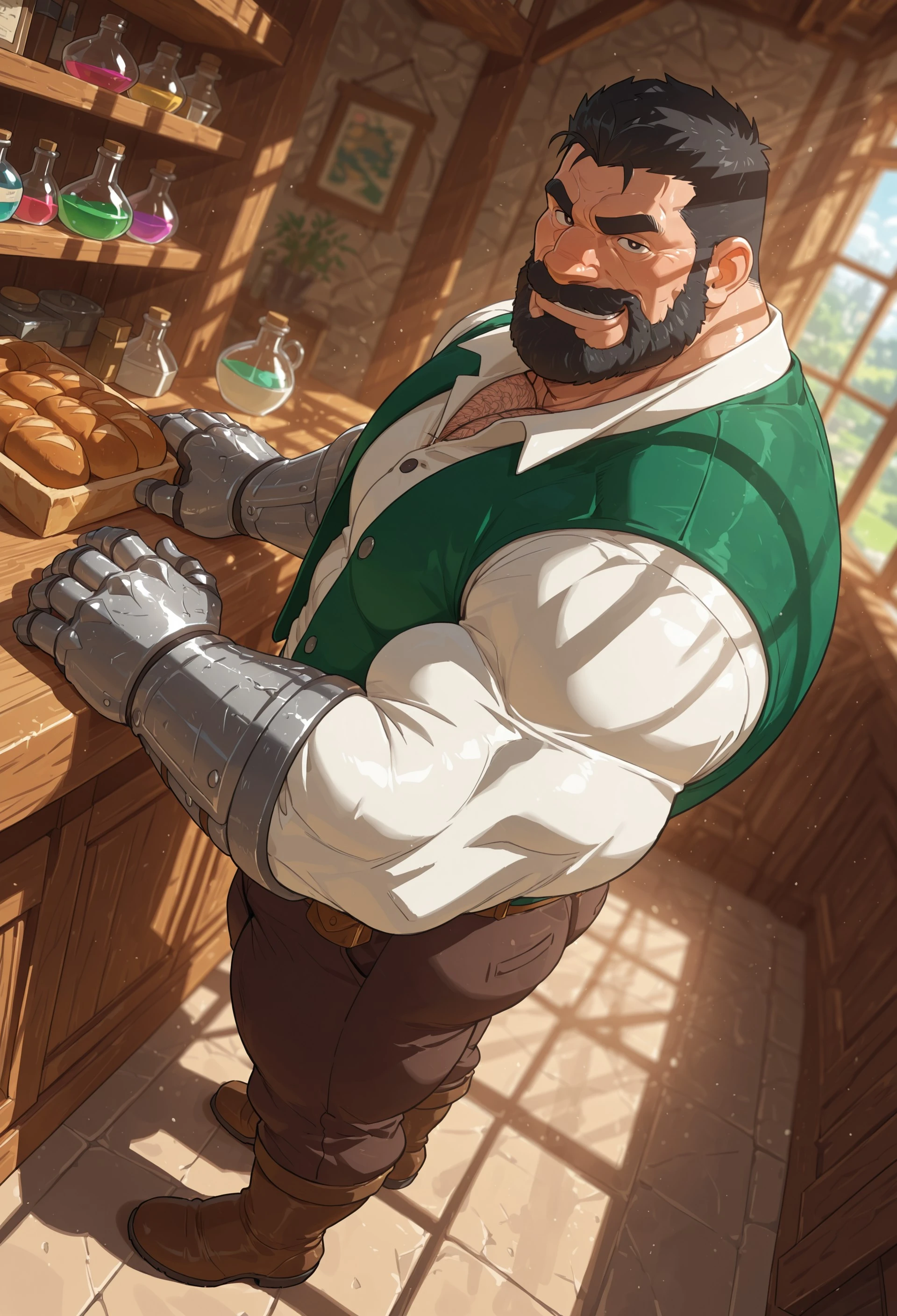 Bernard is the owner of a shop in Bareshade and one of it's kindest residents. He helps all those in need and strives to improve the village with the MC's help. He's a bit of a workaholic and keeps to his job mostly but that doesn't mean he won't make time for you <3.