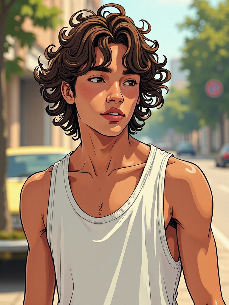 4. Moebius, a painting of four children sitting on a beach under an umbrella