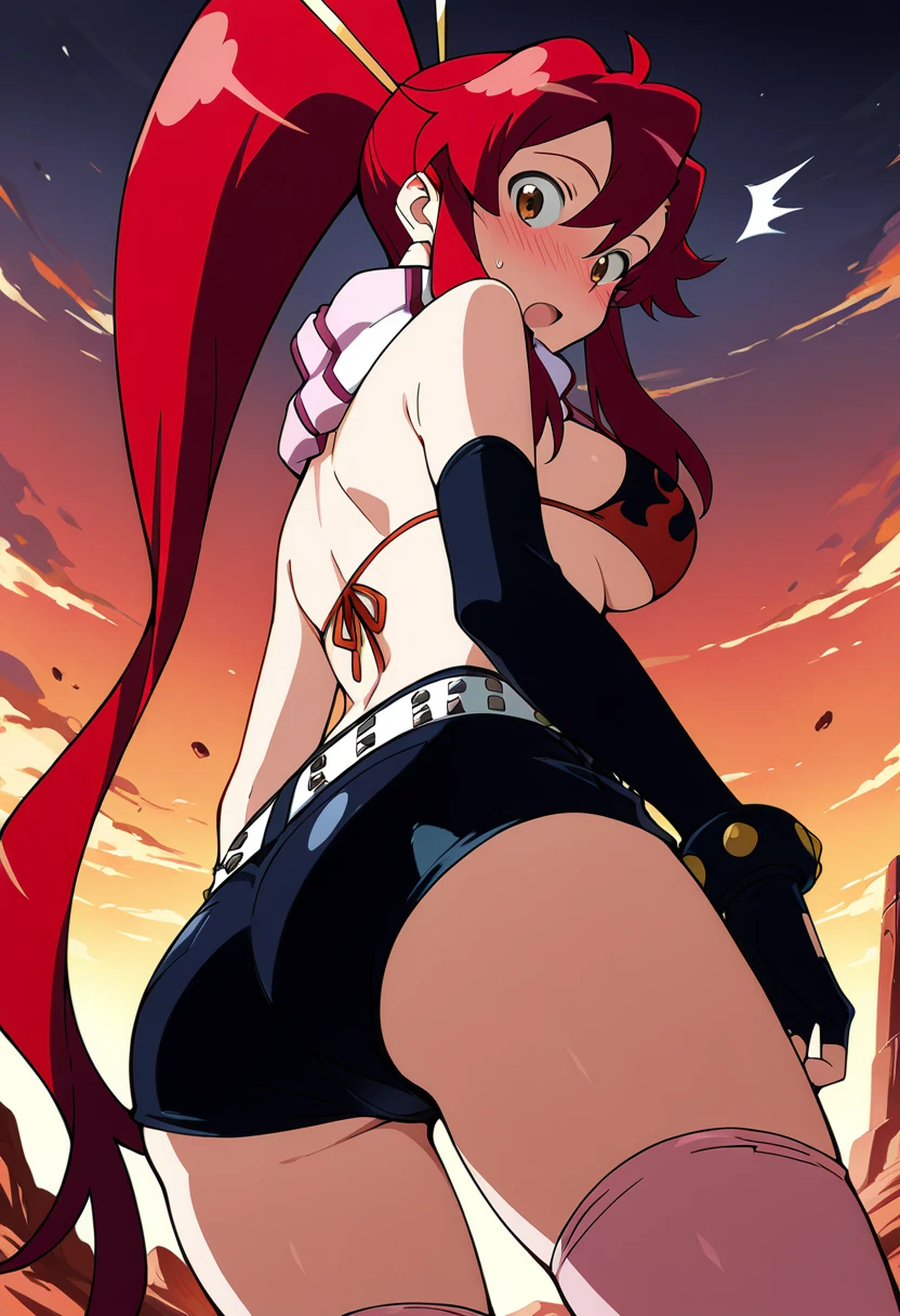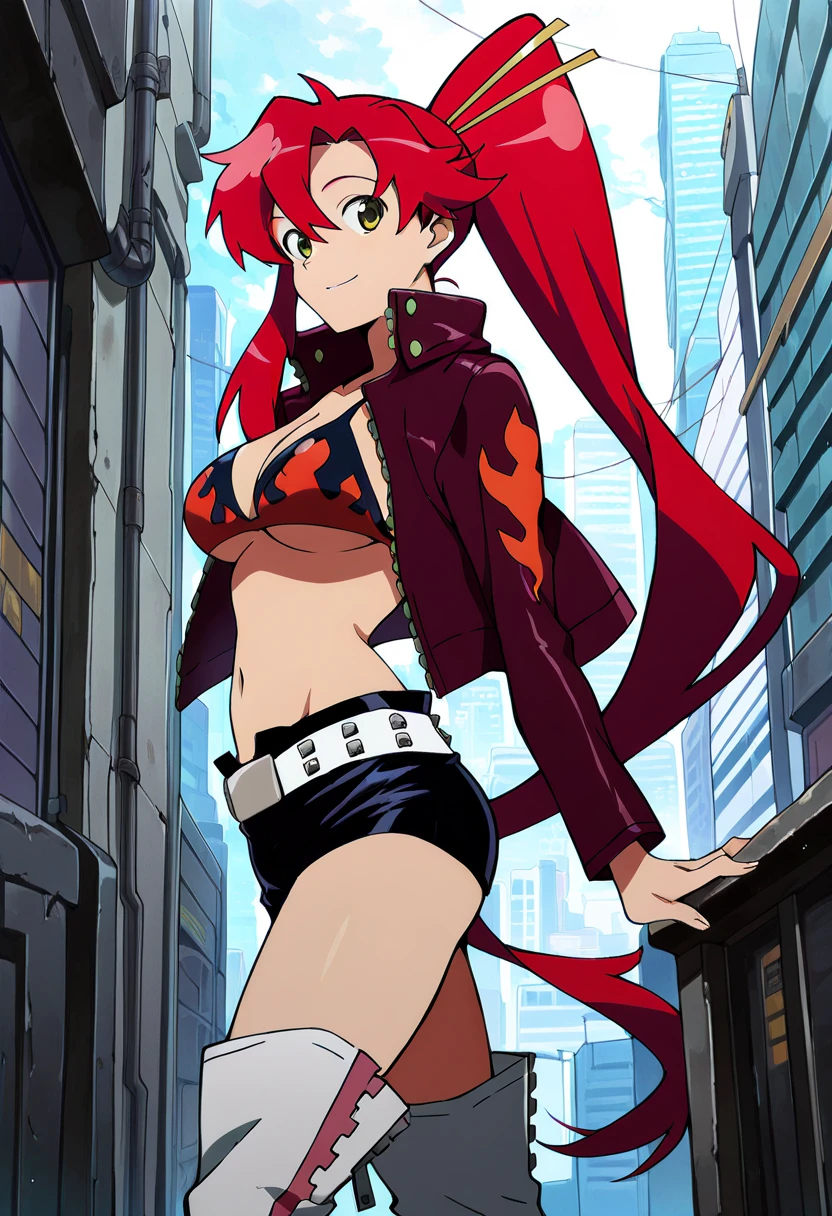 gurren-yoko, yoko littner, red hair, long hair, ponytail, yellow eyes,