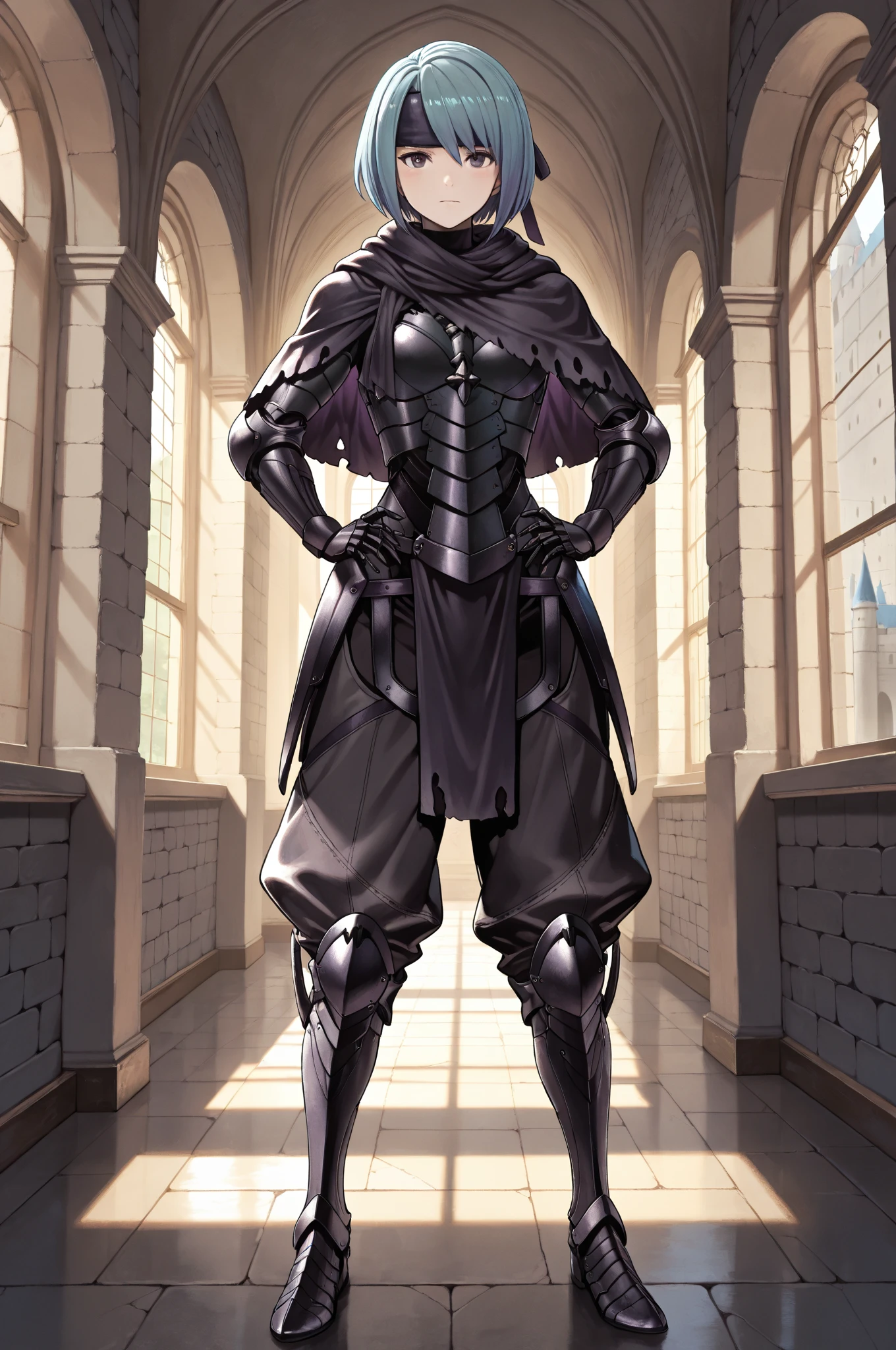 1girl, solo, beruka \(fire emblem\), blue hair, short hair, headband,