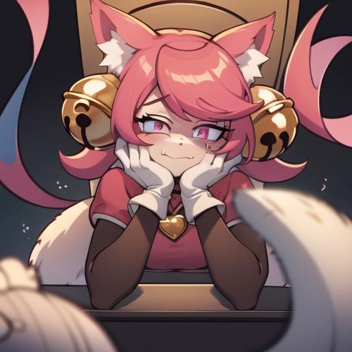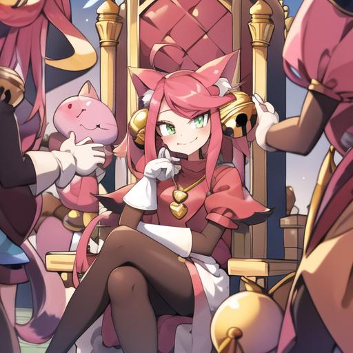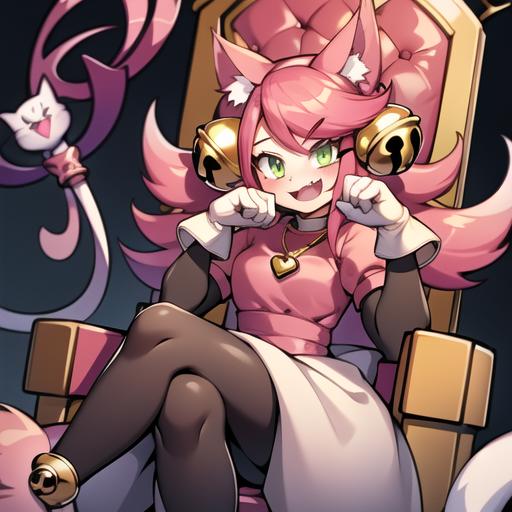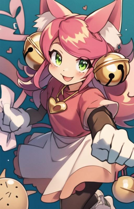 Activation is madmewmew but adding more descriptors help animal ears, cat ears, tail, pink hair, cat tail, bell, hair ornament, cat girl, gloves, jingle bell, green eyes, hair bell, long hair, ahoge, short sleeves, heart, white gloves.