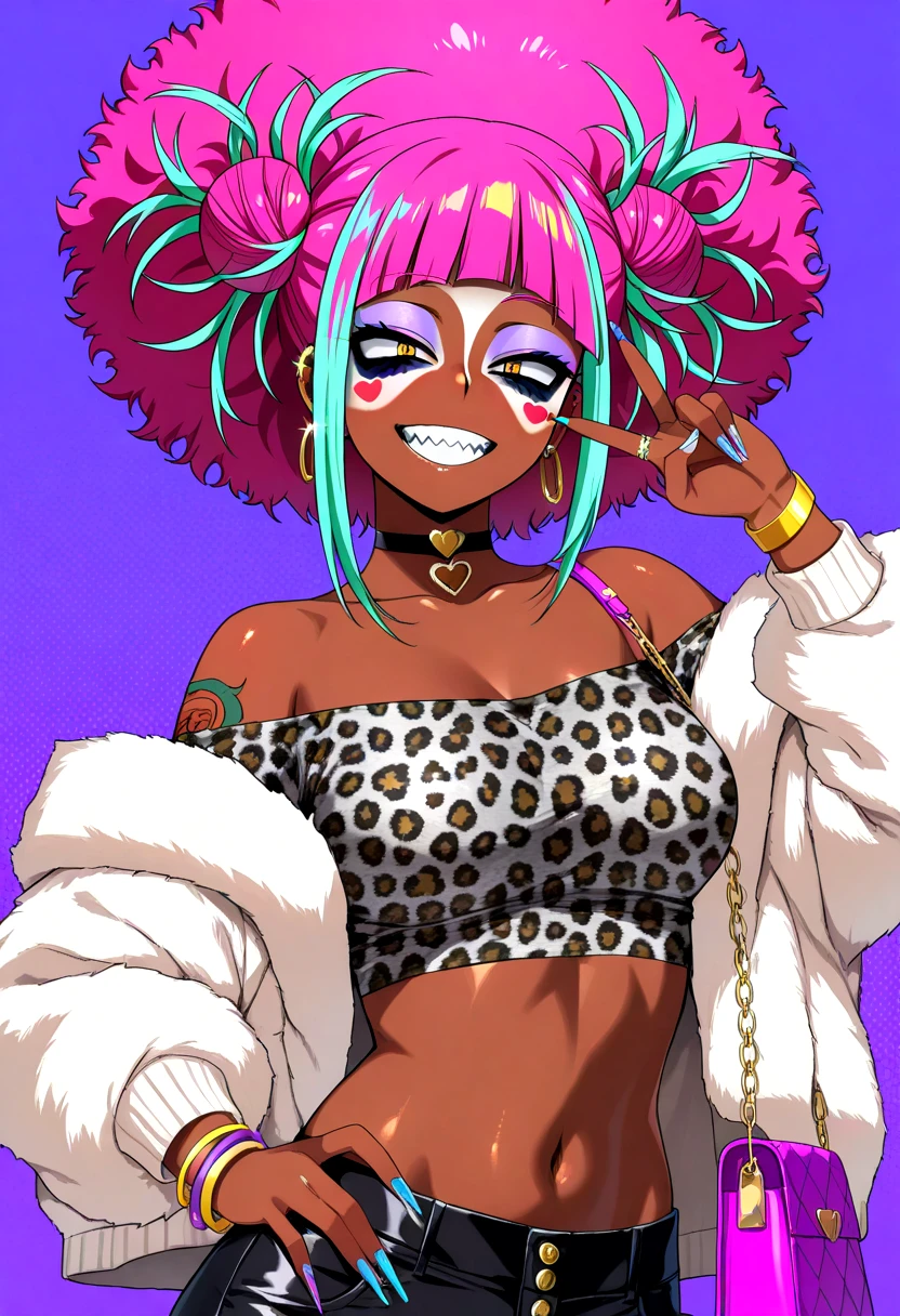 (for face detailer prompt, you can use Score_9, score_8_up, score_7_up, score_6_up, source_anime, 1girl, solo, masterpiece, nose piercing, ear piercing, dark-skinned female, BREAK, (yamanba, white facepaint makeup), star stickers, heart stickers, eyeshadow, very dark skin, (glitter, long thick eyelashes), <lora:Yamanba_Face:0.75>)