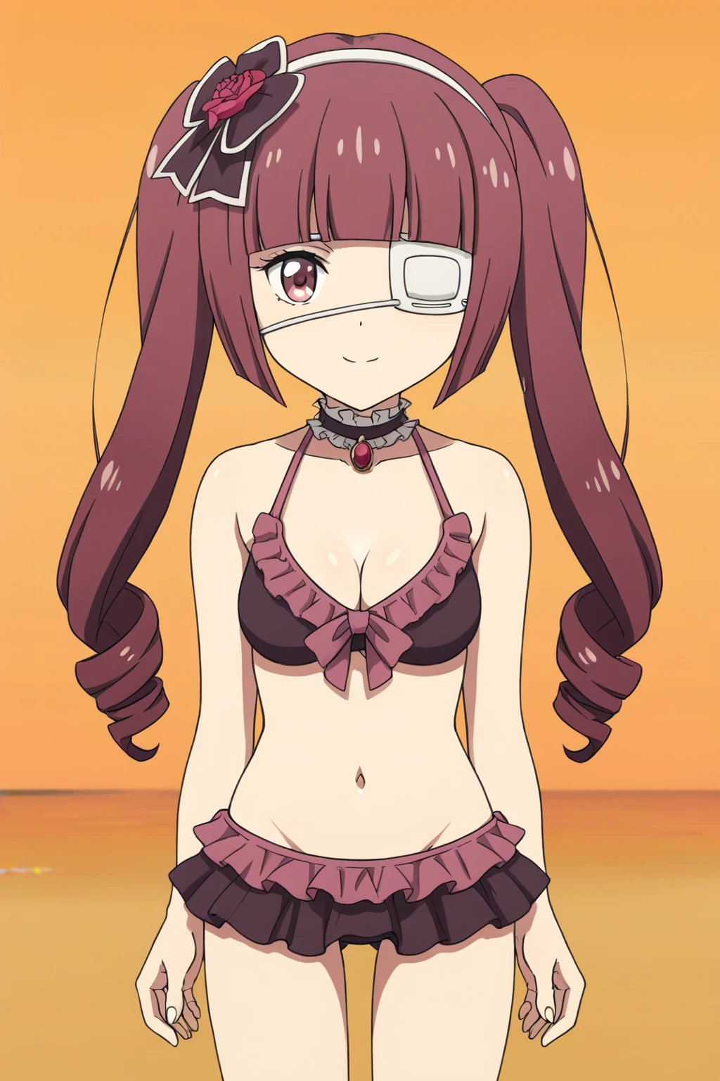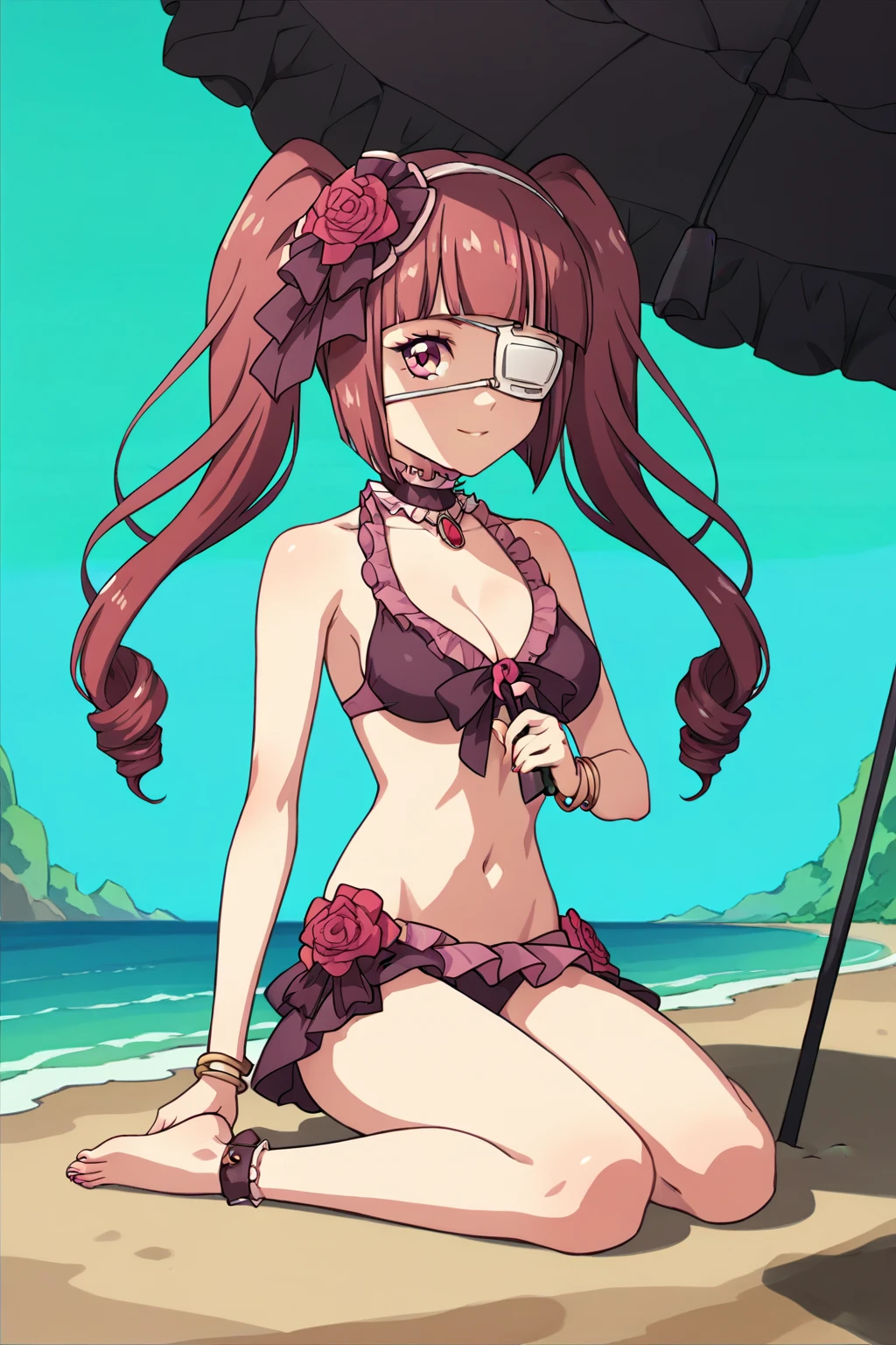 Training images include her white dress and swimsuit. Can add umbrella. Try adding eyepatch to negatives.