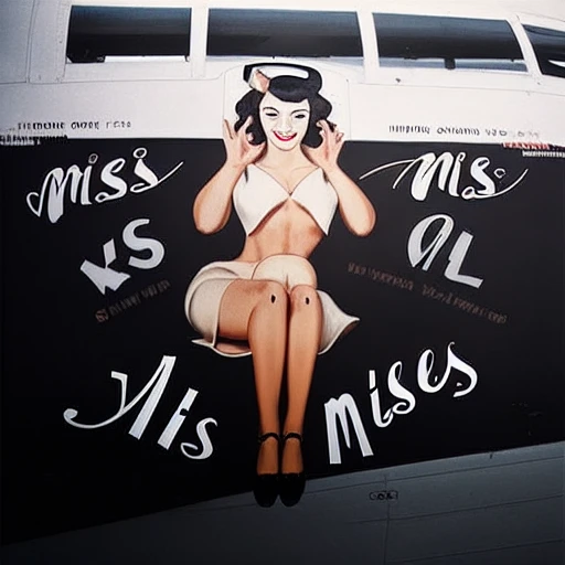 classic pin-up style, retro aesthetics, Riveted metal surface, N0S3ART, vintage,airplane nose art
