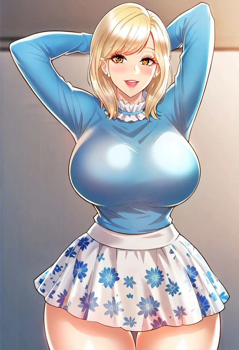 (( <mi-na:1> , mi-na, thin waist, wide hips, beautiful skin, piercing yellow eyes, clear eyes, bright pupils, beautiful eyes, beautiful blonde hair, beautiful medium bob haircut, bangs, huge and shaggy breasts, natural beauty, extraordinary beautiful woman, attractive woman, super sexy woman, lustful body, sexy woman with seductive obscene body, sensual body, voluptuous body, sexy beauty, no piercings, no piercing, ))