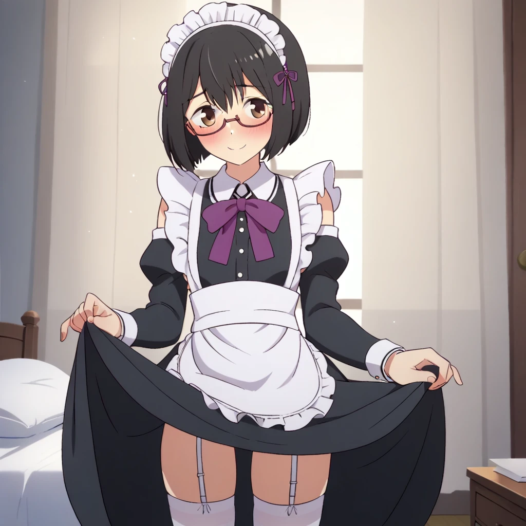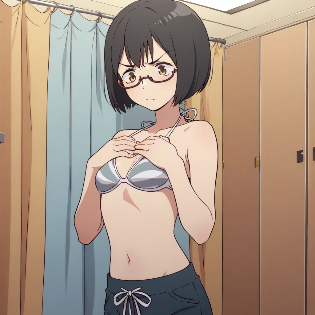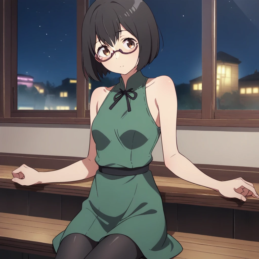 Character Tags) - SorawoUP, brown eyes, black hair, short hair, bob cut, glasses, semi-rimless eyewear, under-rim eyewear