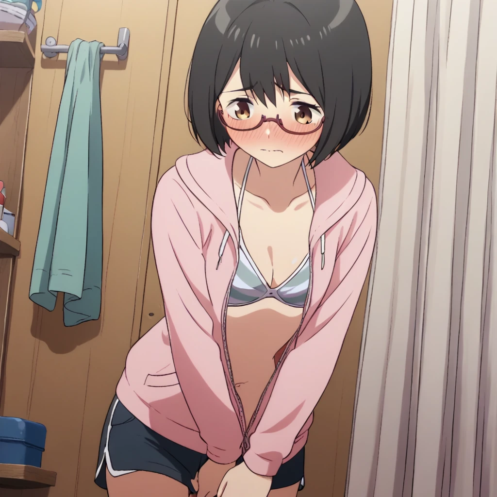 Holiday Outfit) - hoodie, hood, sleeveless, black shorts (Removed due to cross contamination issues with swimsuit and default)