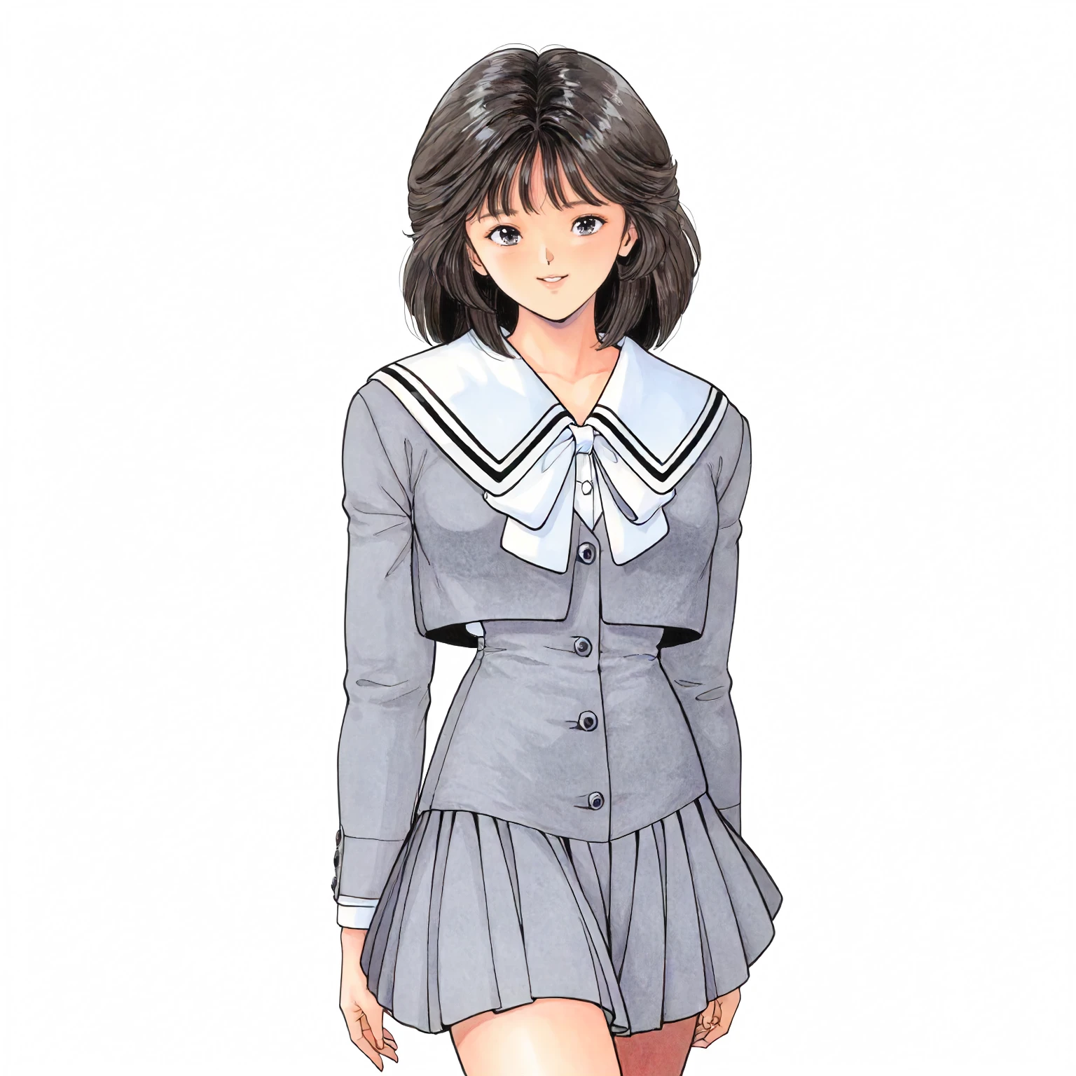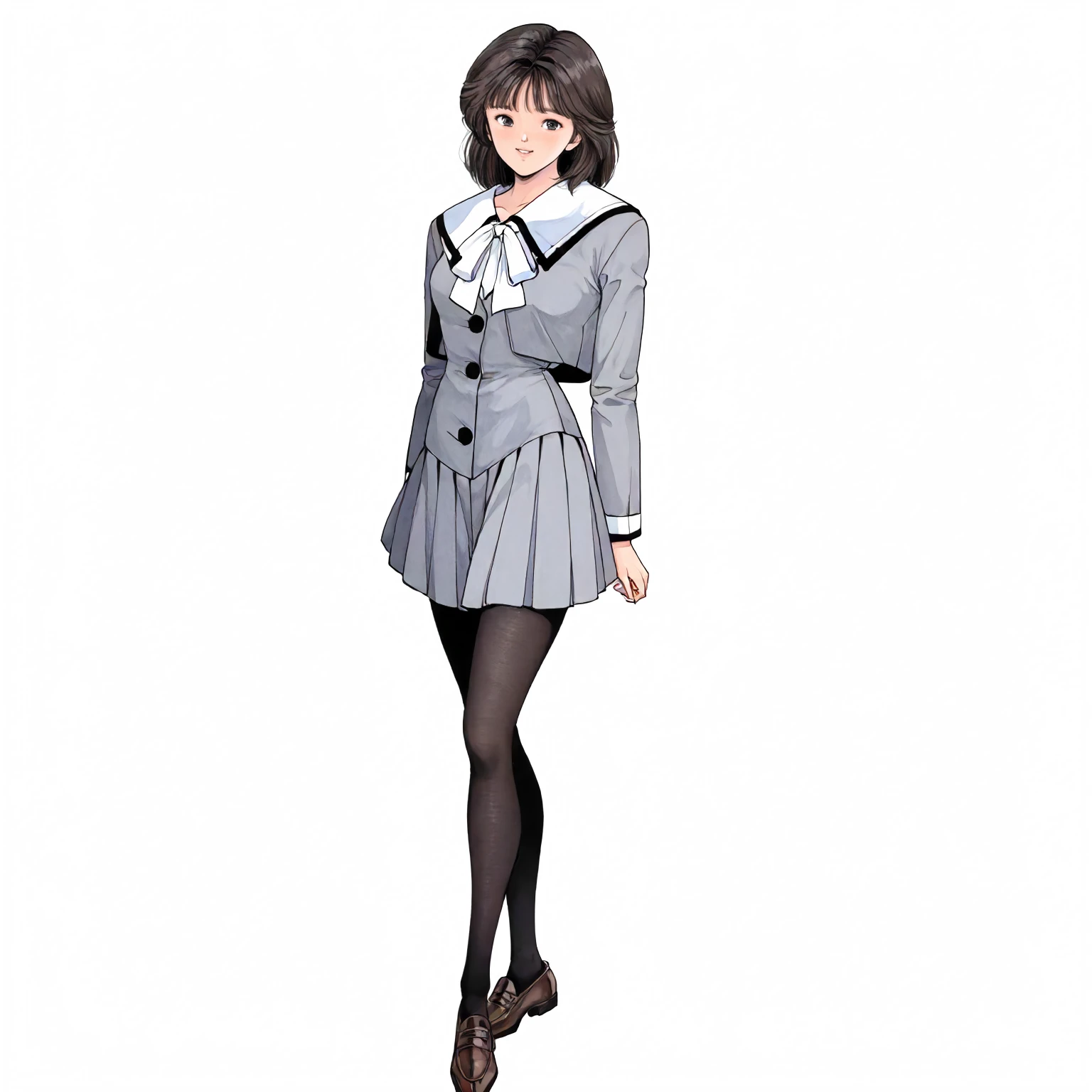 white sailor collar,gray short jacket,long_sleeves,white bowtie,gray button vest, pleated_skirt,gray short skirt,