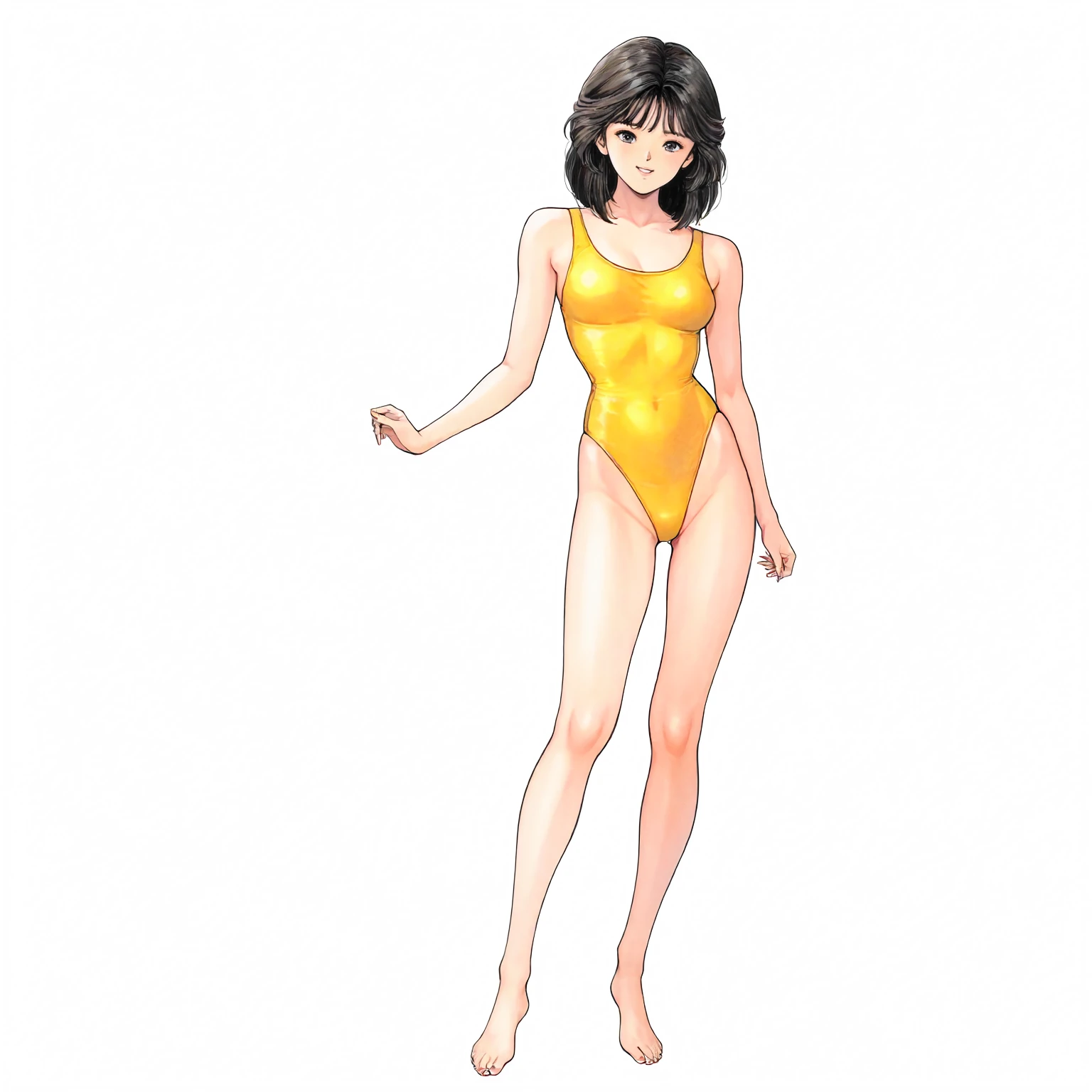 retro artstyle, hayakawa_moemi\(video_girl\),1girl,black brown hair,medium hair,black eyes,lips, skinny,medium breasts,
