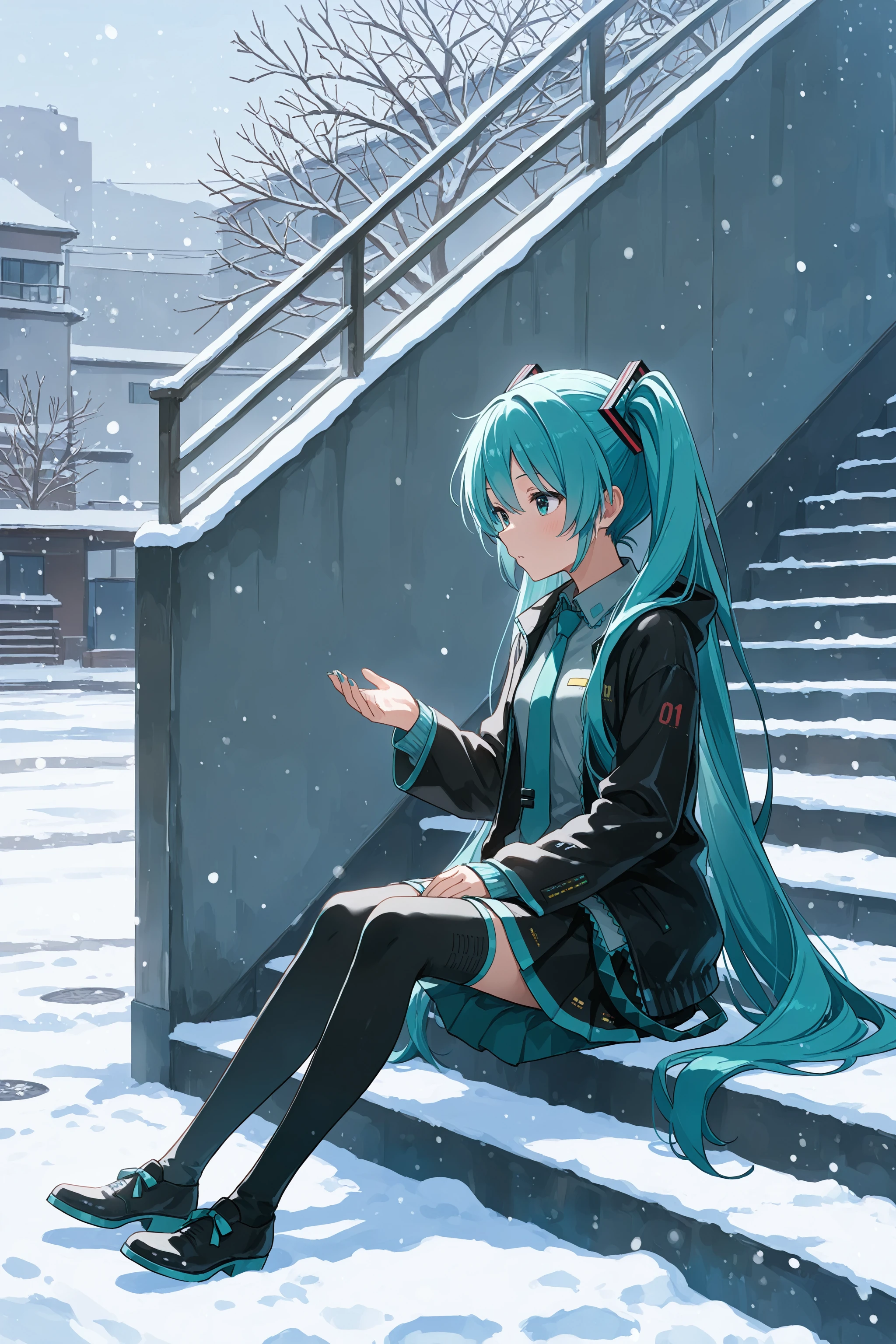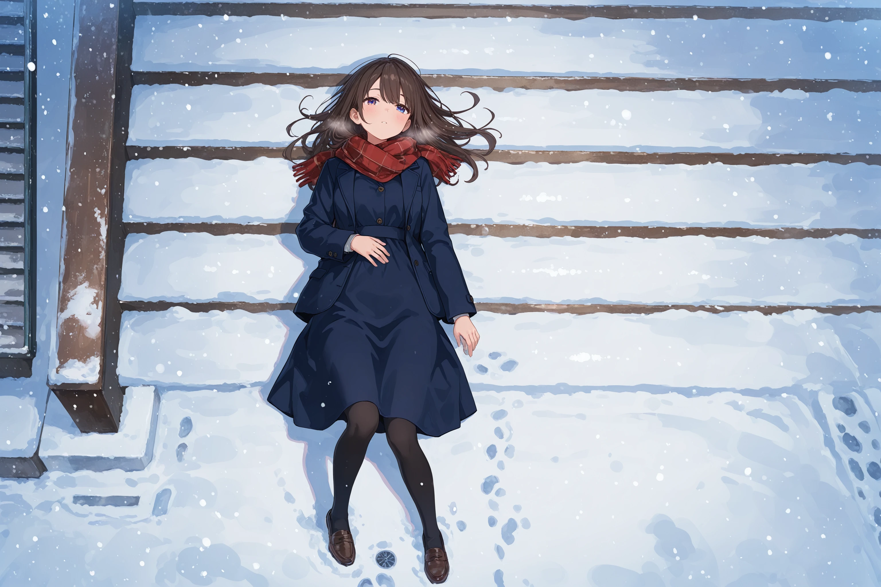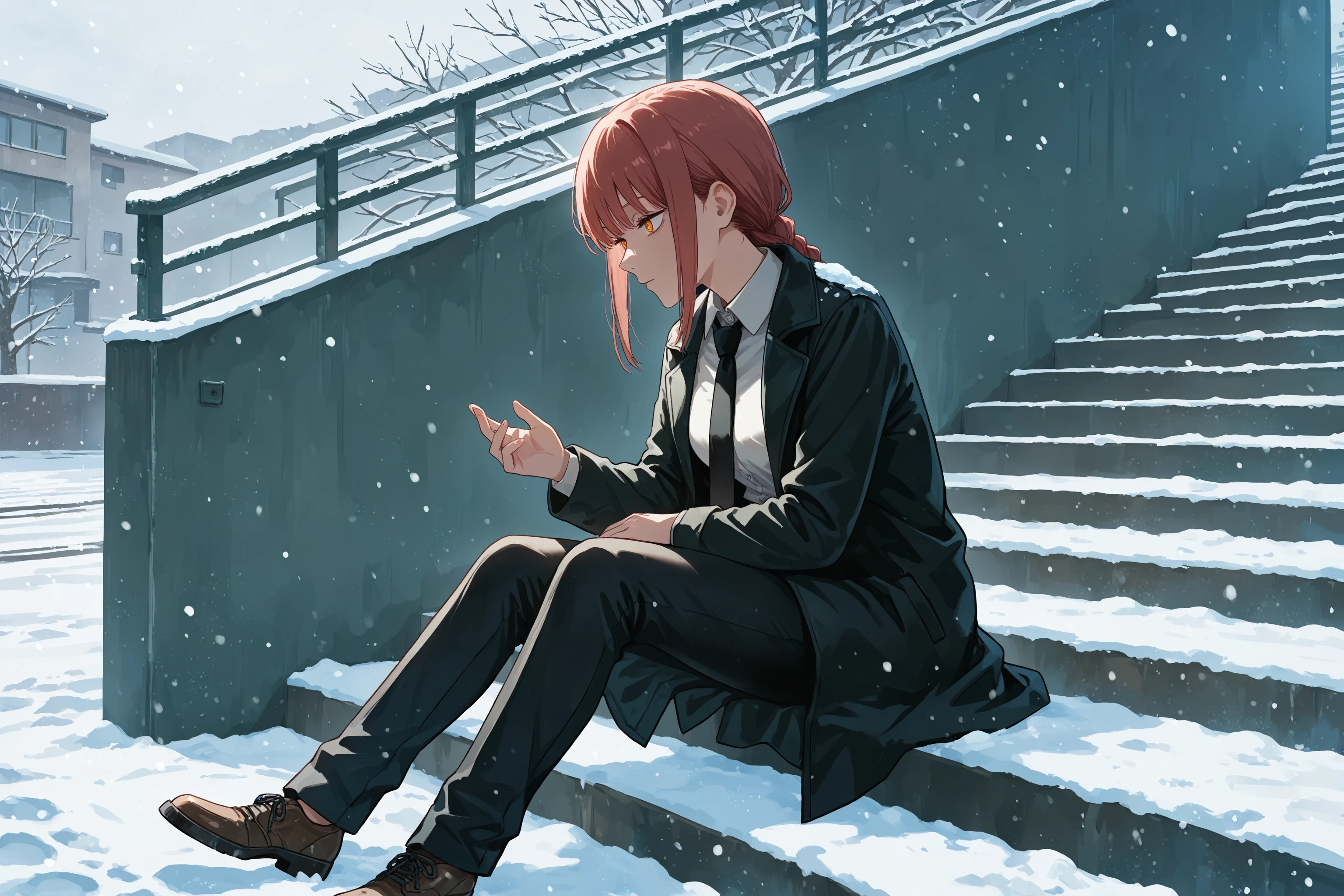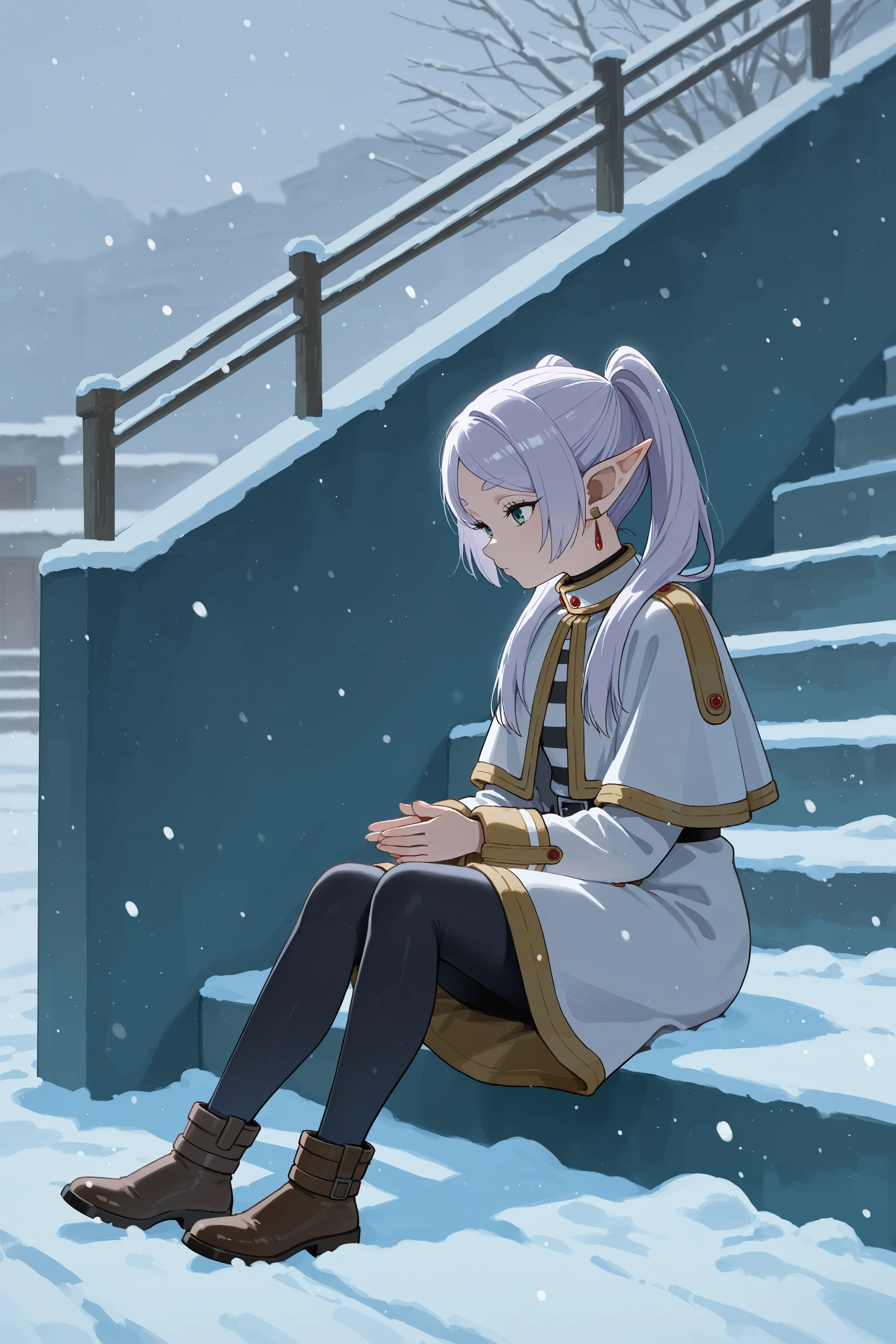 stairs, from side, sitting, snow