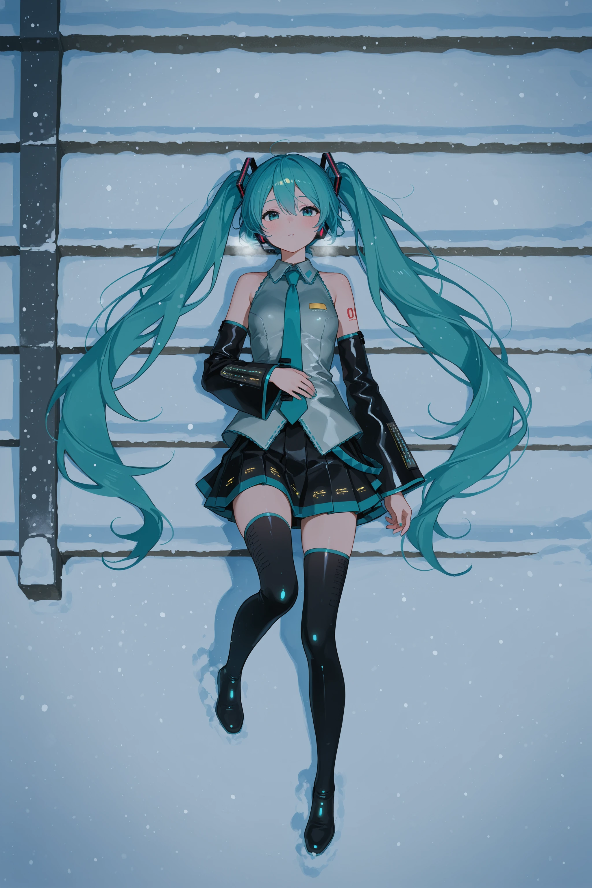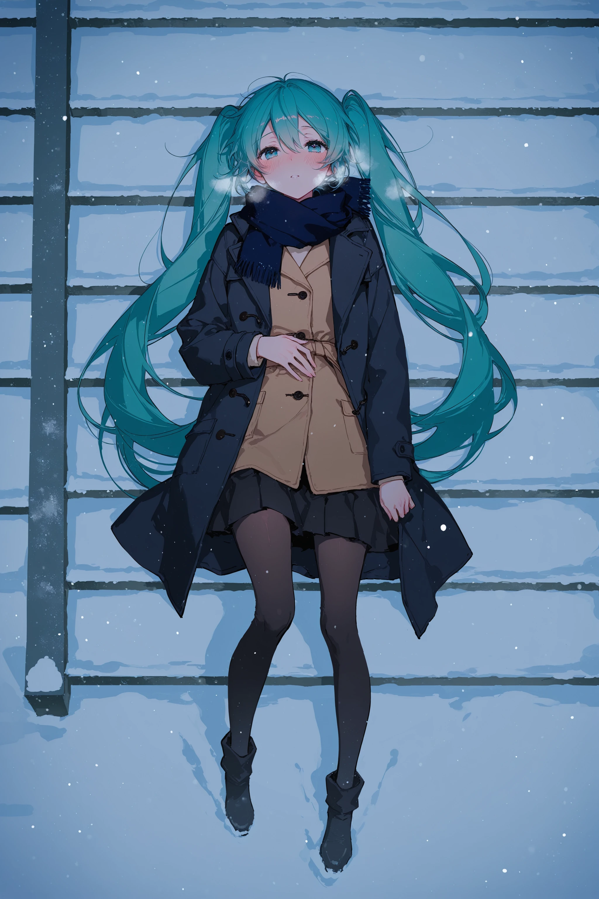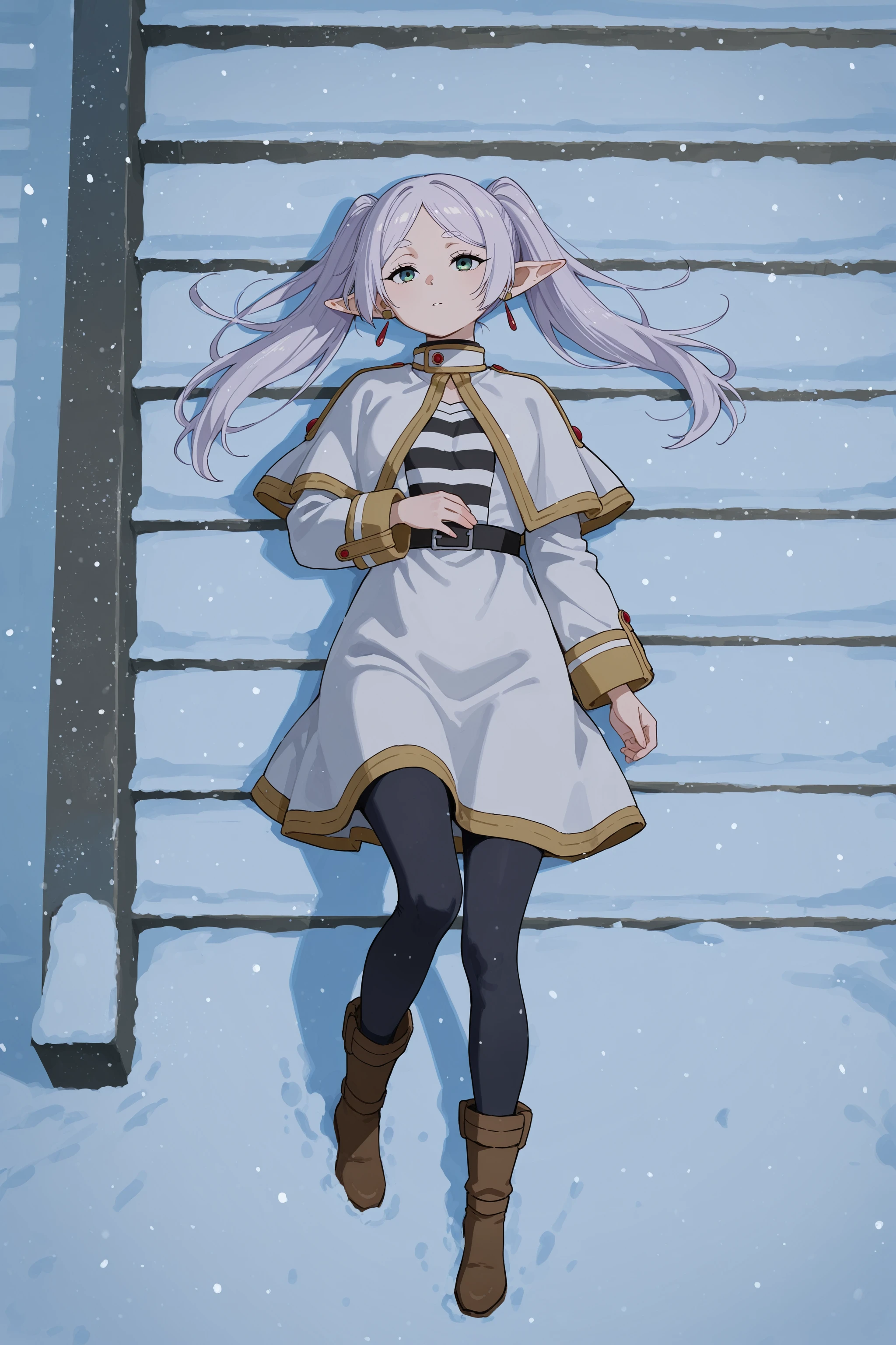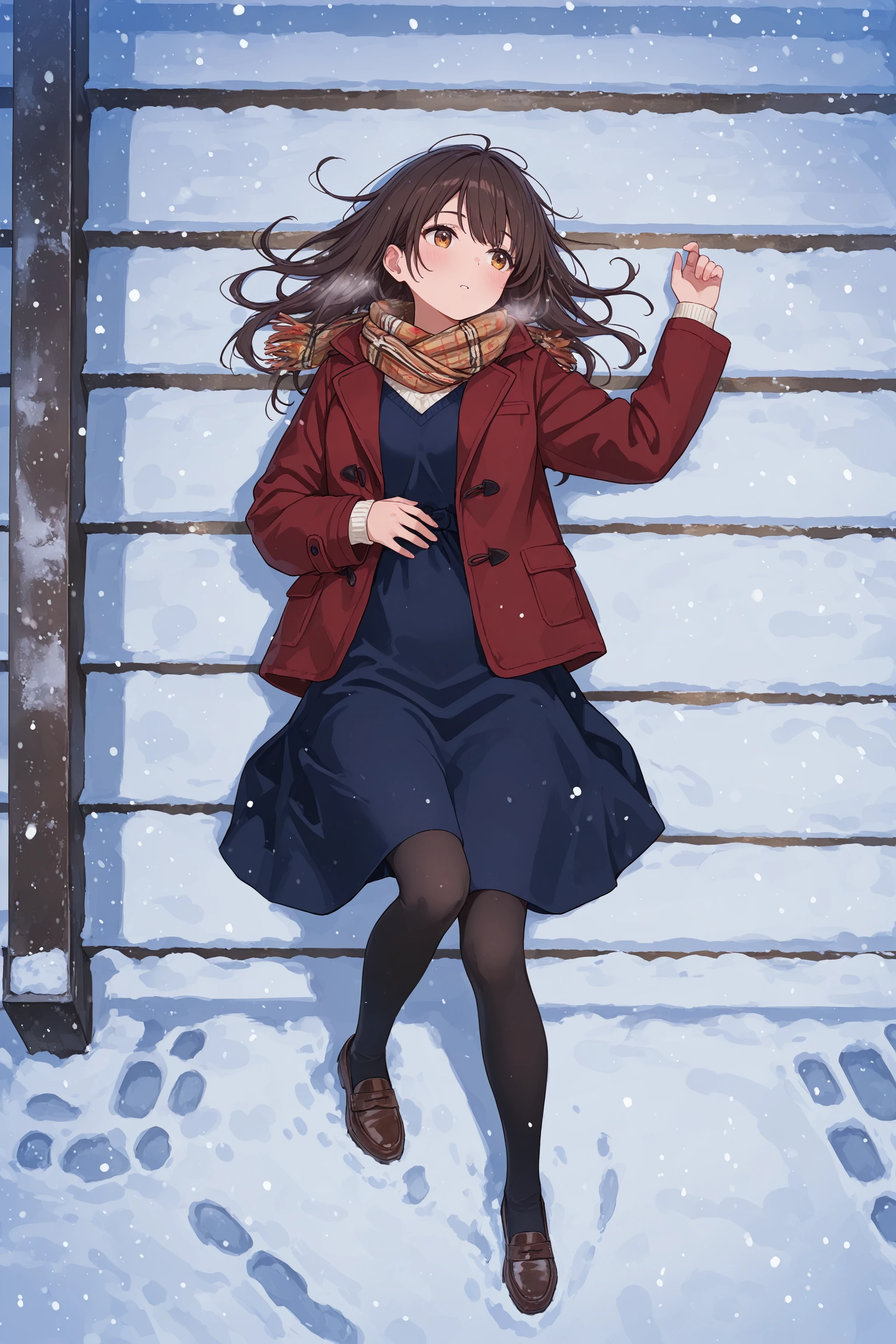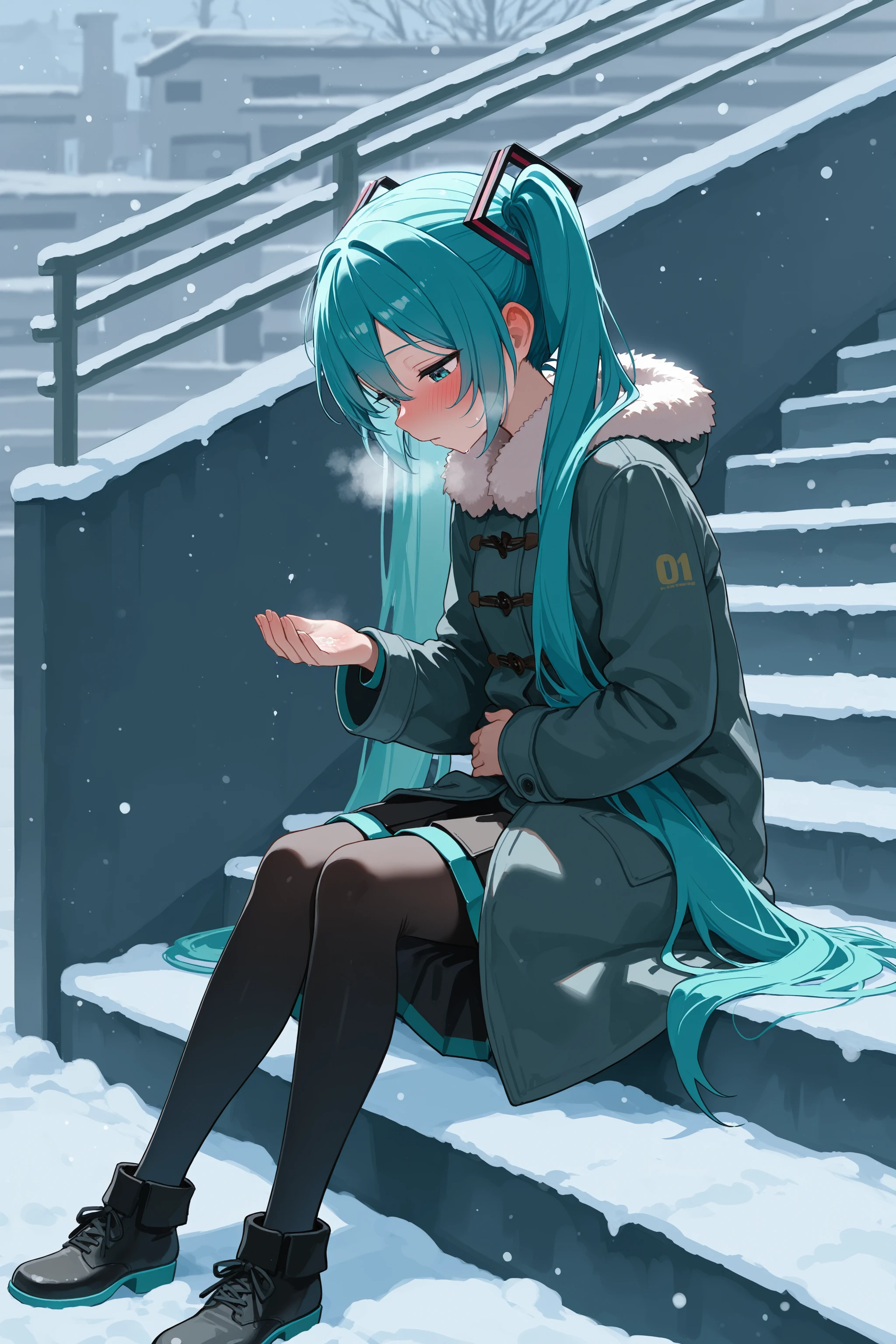 stairs, from side, sitting, snow