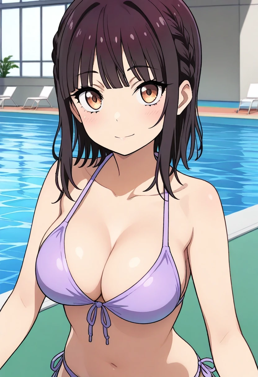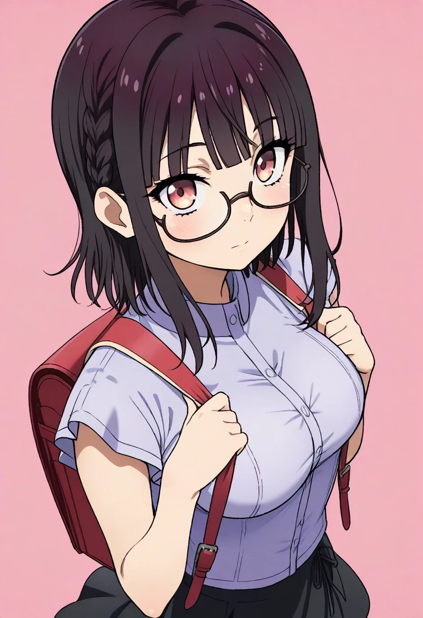 sumifuji, medium hair, side braid, blunt bangs