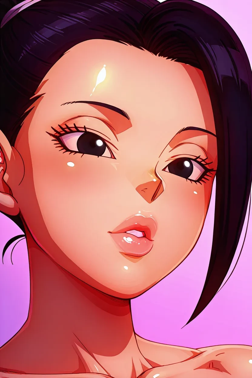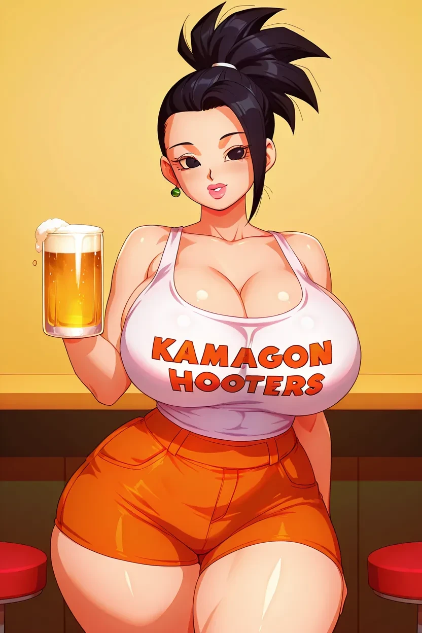 1girl, kale (Dragon Ball Super), black hair, short hair, ponytail black eyes, glossy lips, thick lips, massive breasts, Dragon_Ball_Super_Art_Style, HD, high-resolution, 4k, excellent quality, clean animation