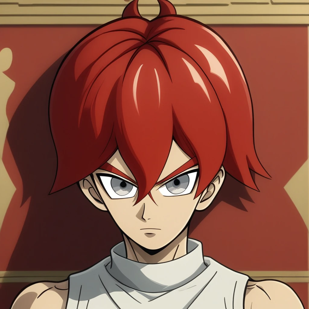Akiro_Zenshin, red hair, silver eyes, tanktop