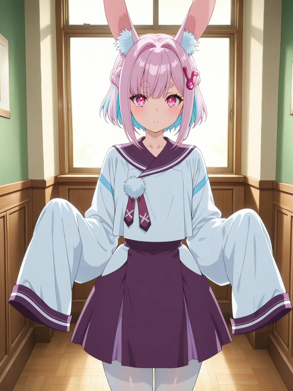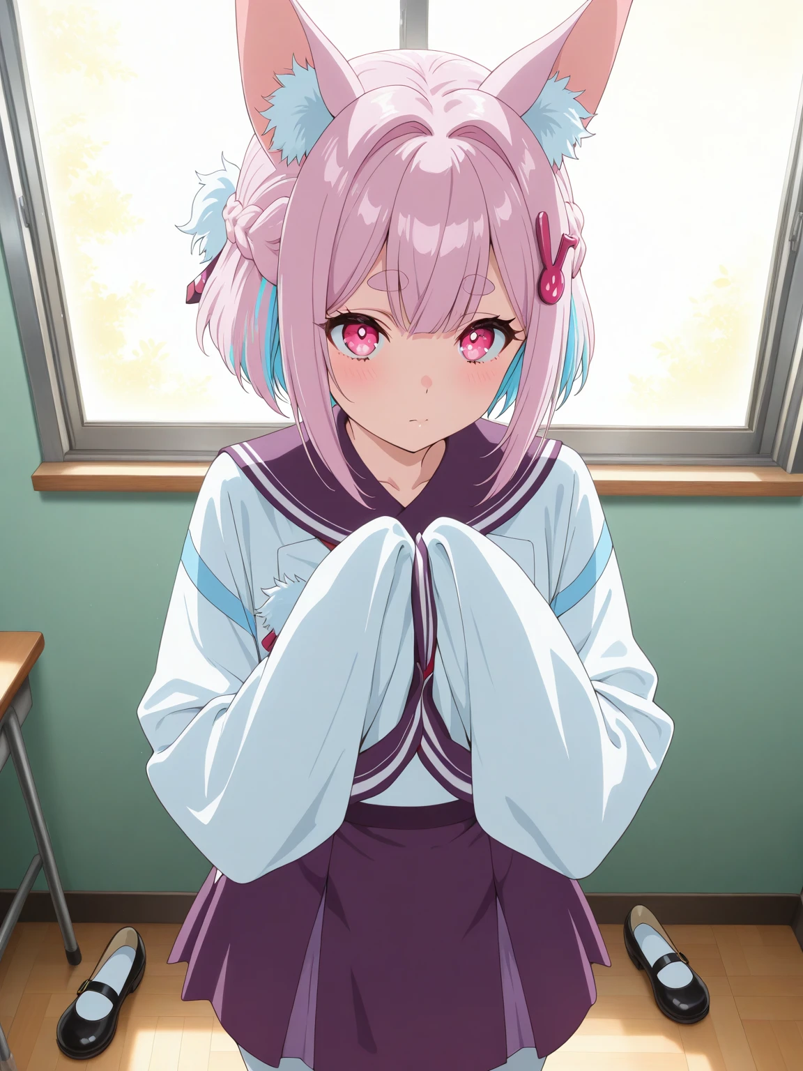 Character: (SuiUsami, pink eye, two-tone hair, pink hair, blue hair, short hair, french braid, hair intakes, animal ears, hair ornament)