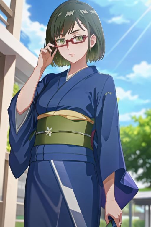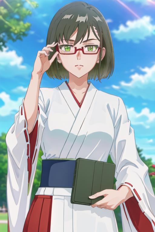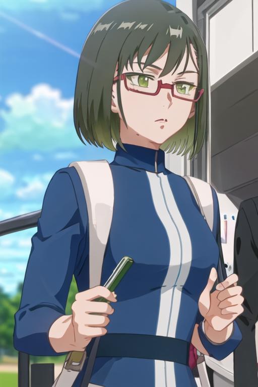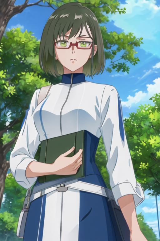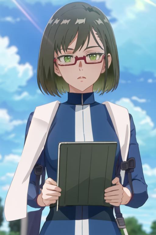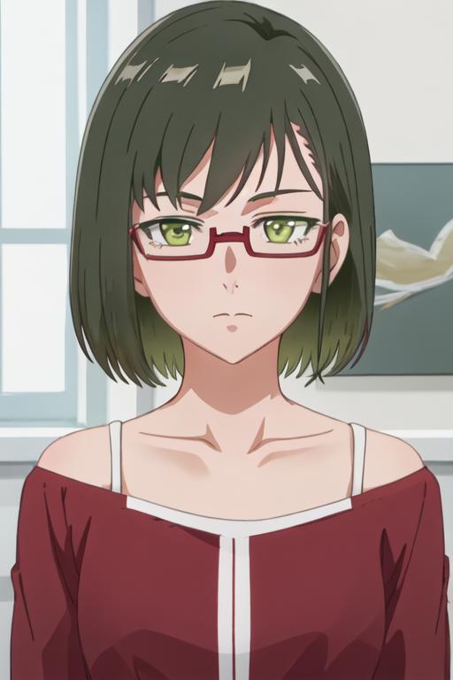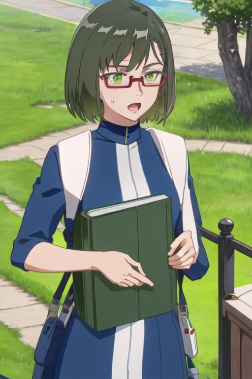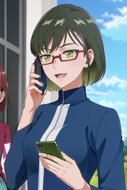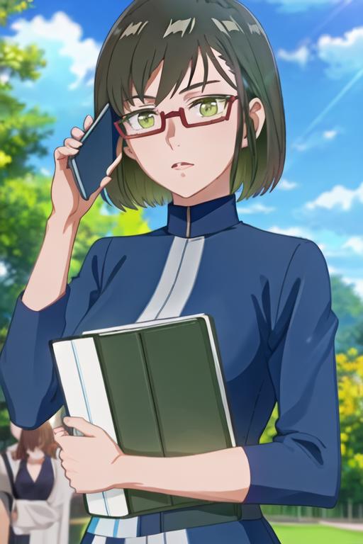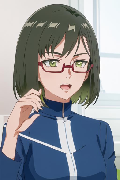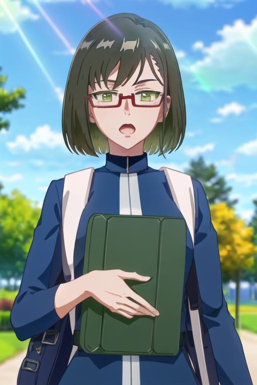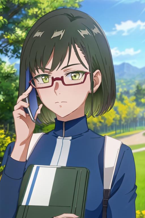 The trigger word is shinjo_amane_birdiewinggolfgirlsstory, and the recommended tags are best quality, masterpiece, highres, solo, {shinjo_amane_birdiewinggolfgirlsstory:1.15}, glasses, short_hair, semi-rimless_eyewear, green_hair, green_eyes, under-rim_eyewear, red-framed_eyewear.