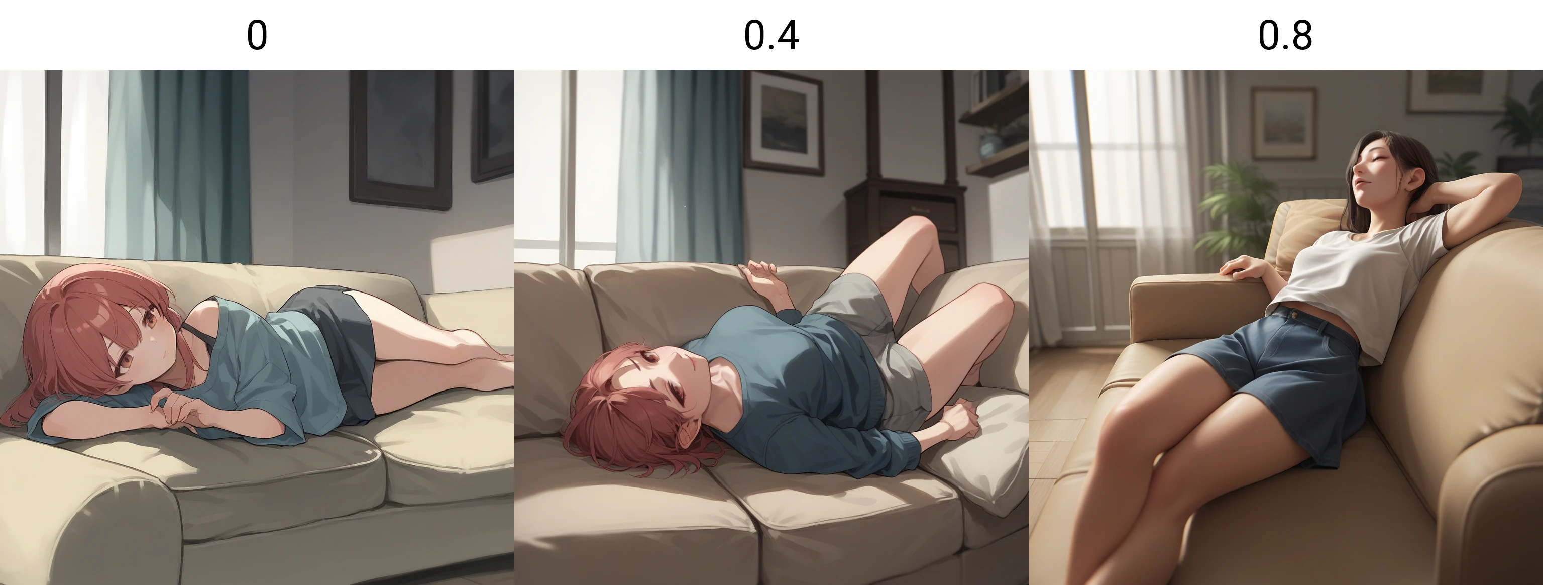 lying, lounging, sitting, on back, on side