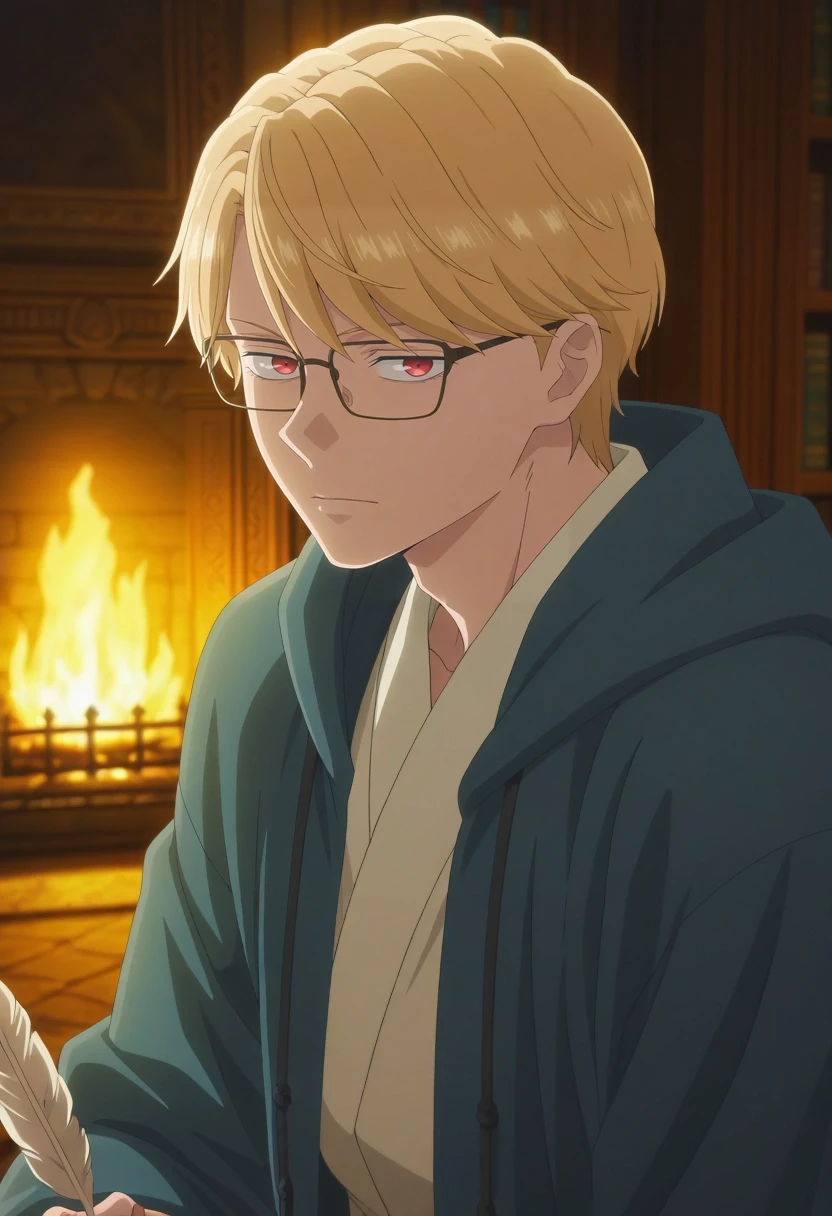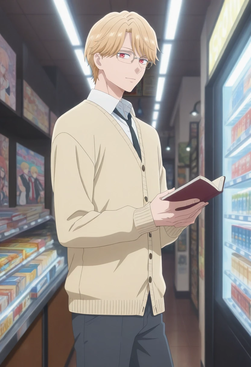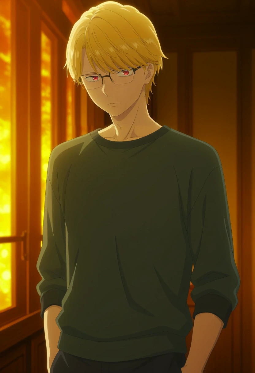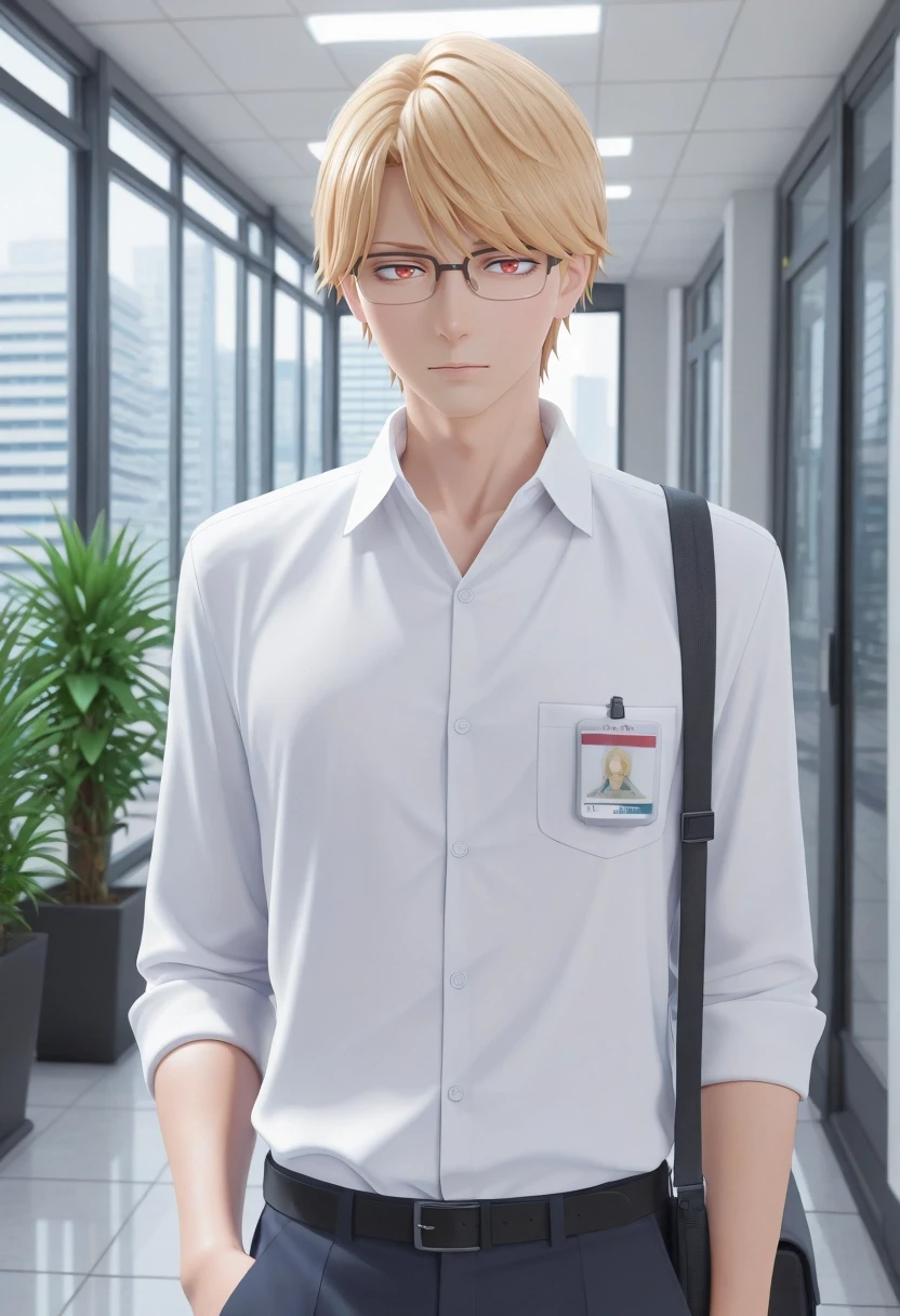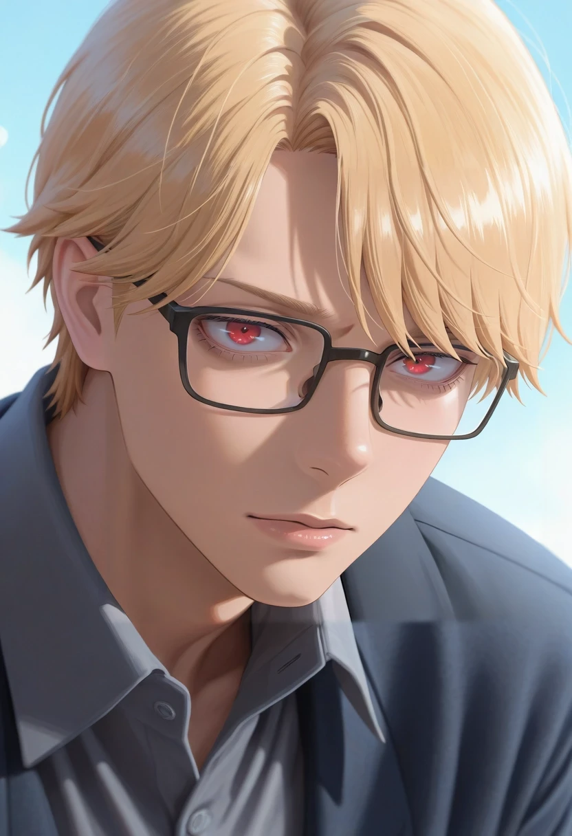 eita_sasaki, blonde hair, red eyes, short hair, bangs