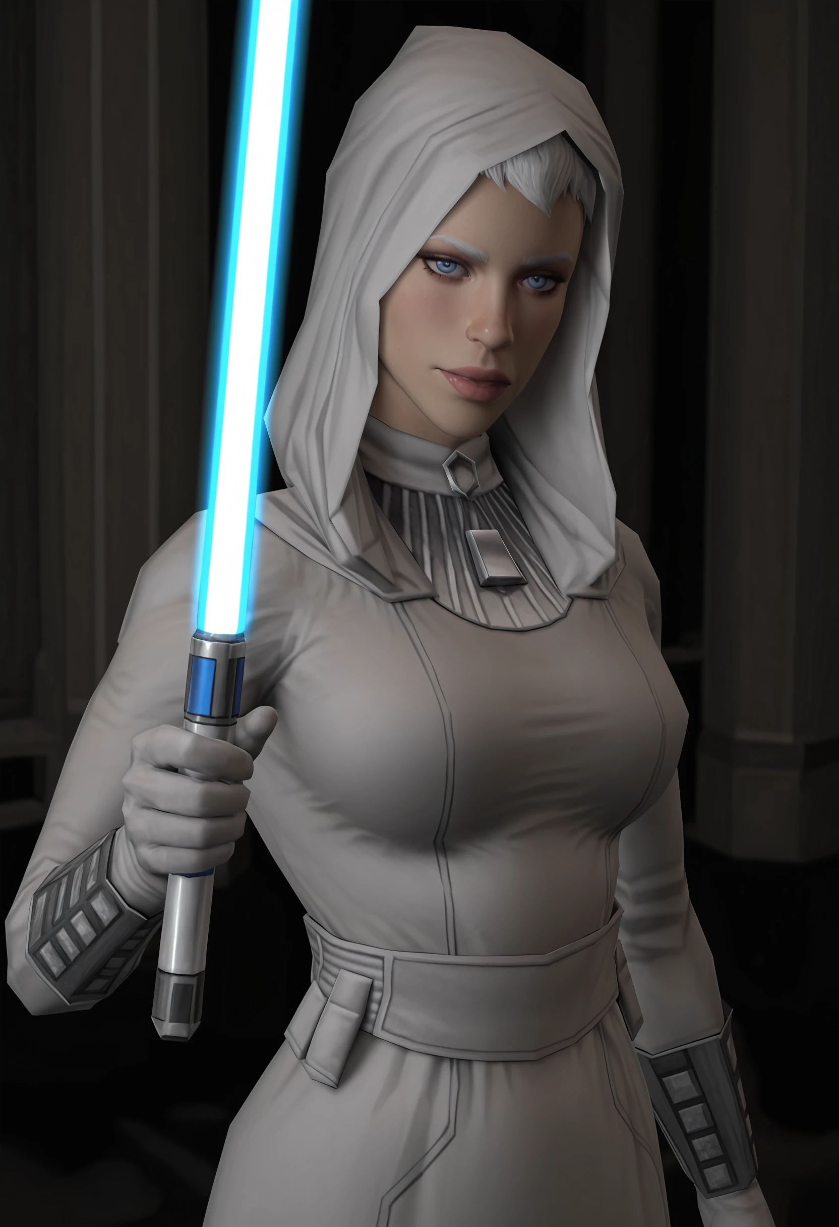 She is a half-Human, half-Echani hybrid fighter of Jedi heritage.
