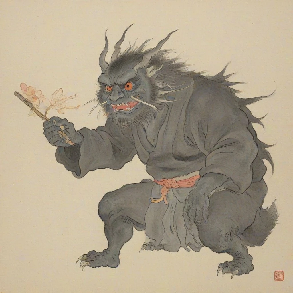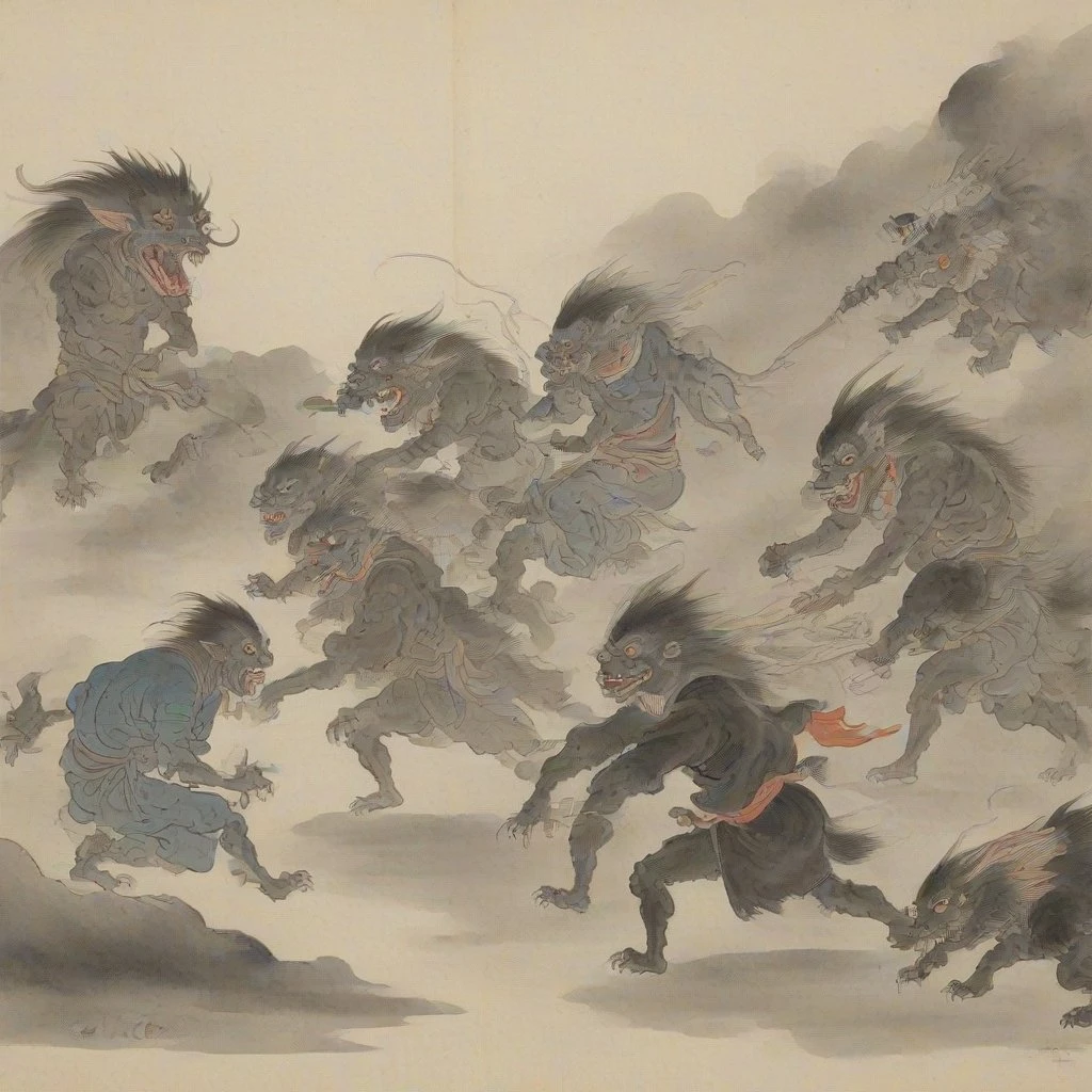 Style inspired from works by Hyakki Yagyō (百鬼夜行, https://en.wikipedia.org/wiki/Hyakki_Yagyō). I would like to use "Euler a / Simple" sampling method and scheduler. And you would get expected results by using more keywords like "brush painting," and "traditional media."
