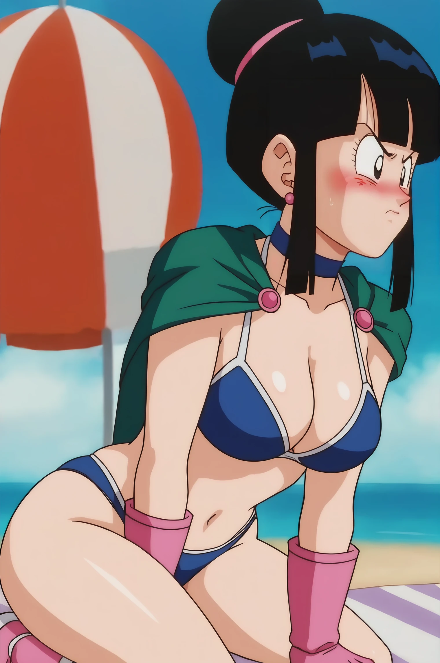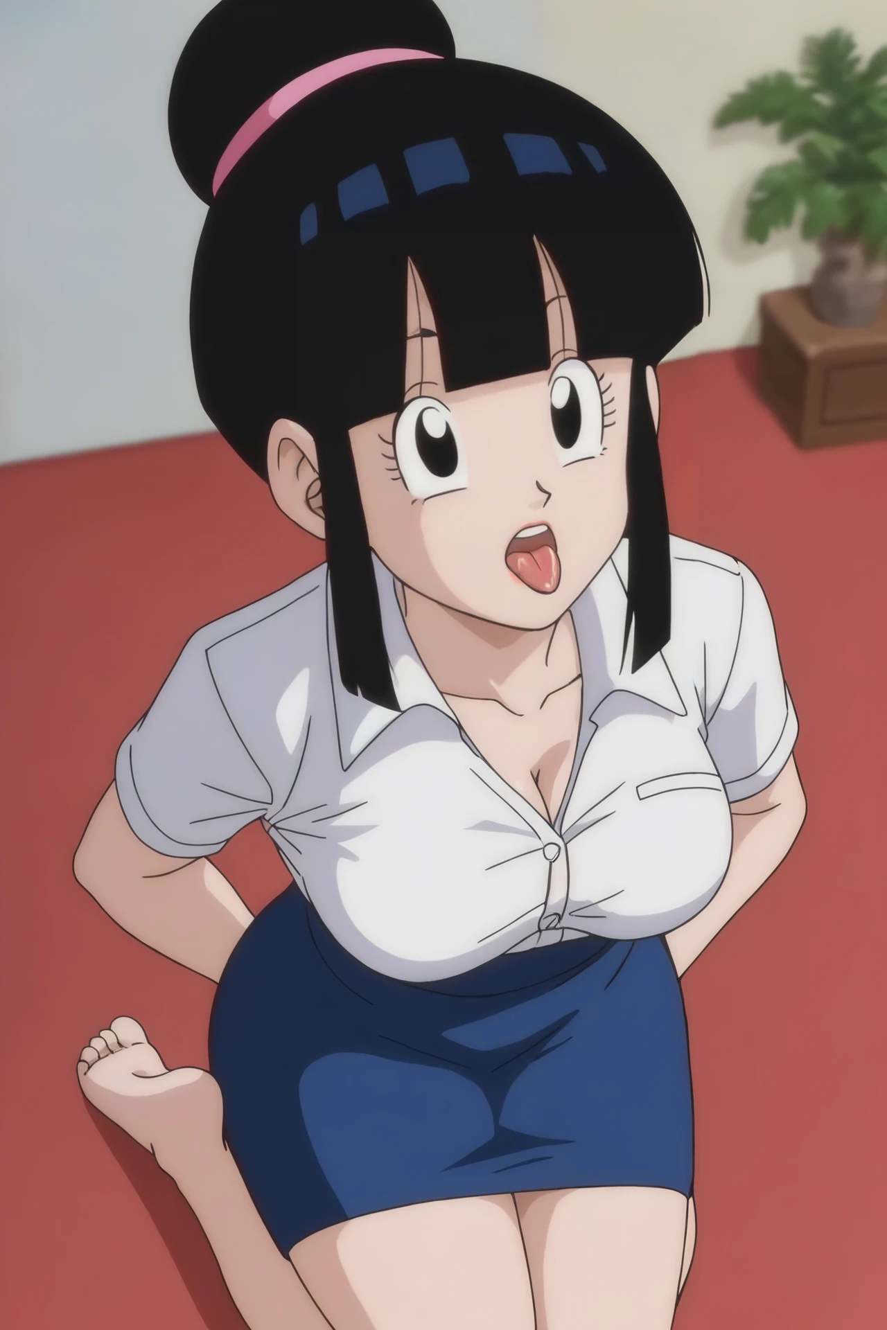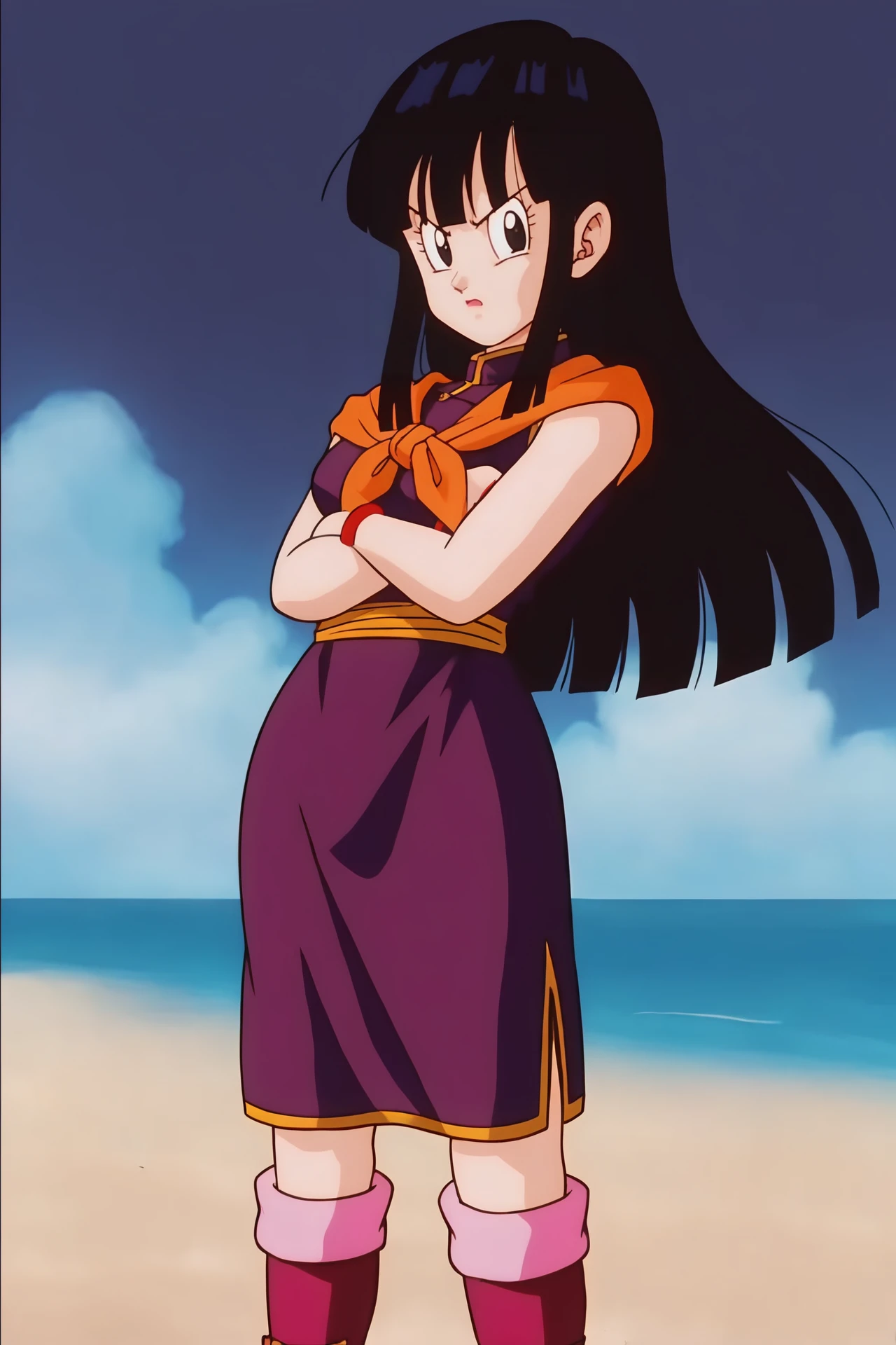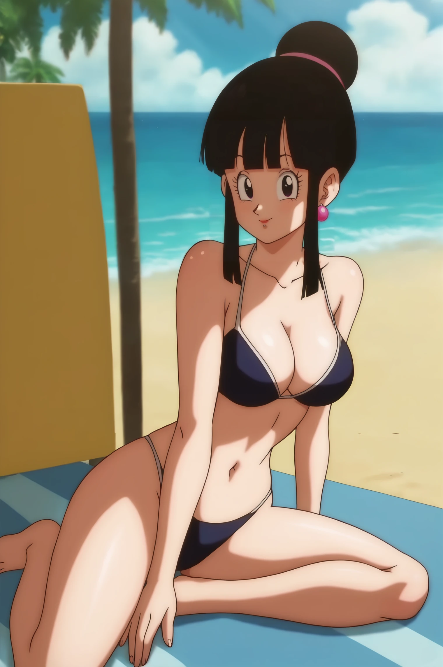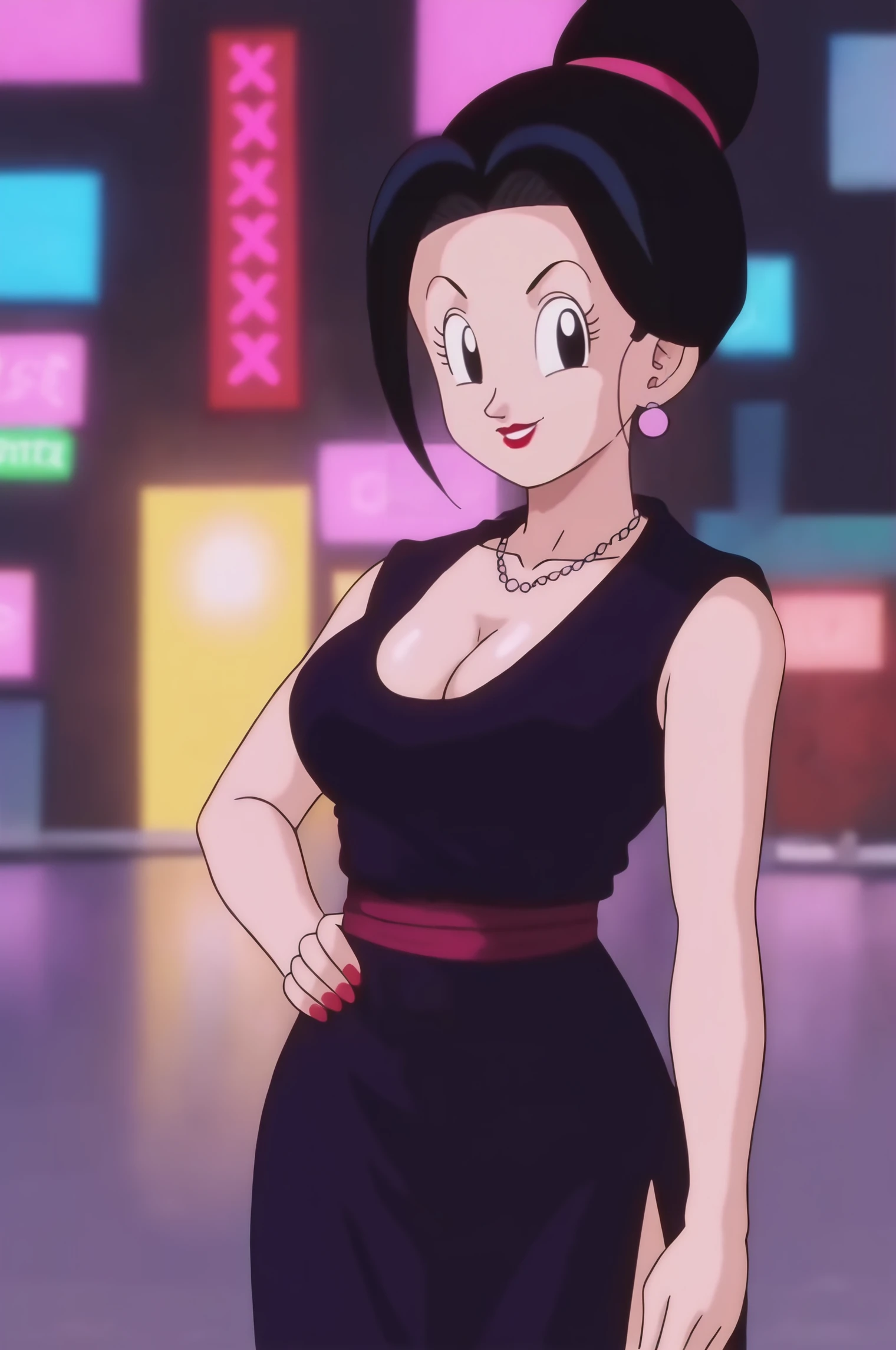 chi-chi, buu saga, single hair bun, black hair, hair pulled back, hair bun, black eyes, earrings