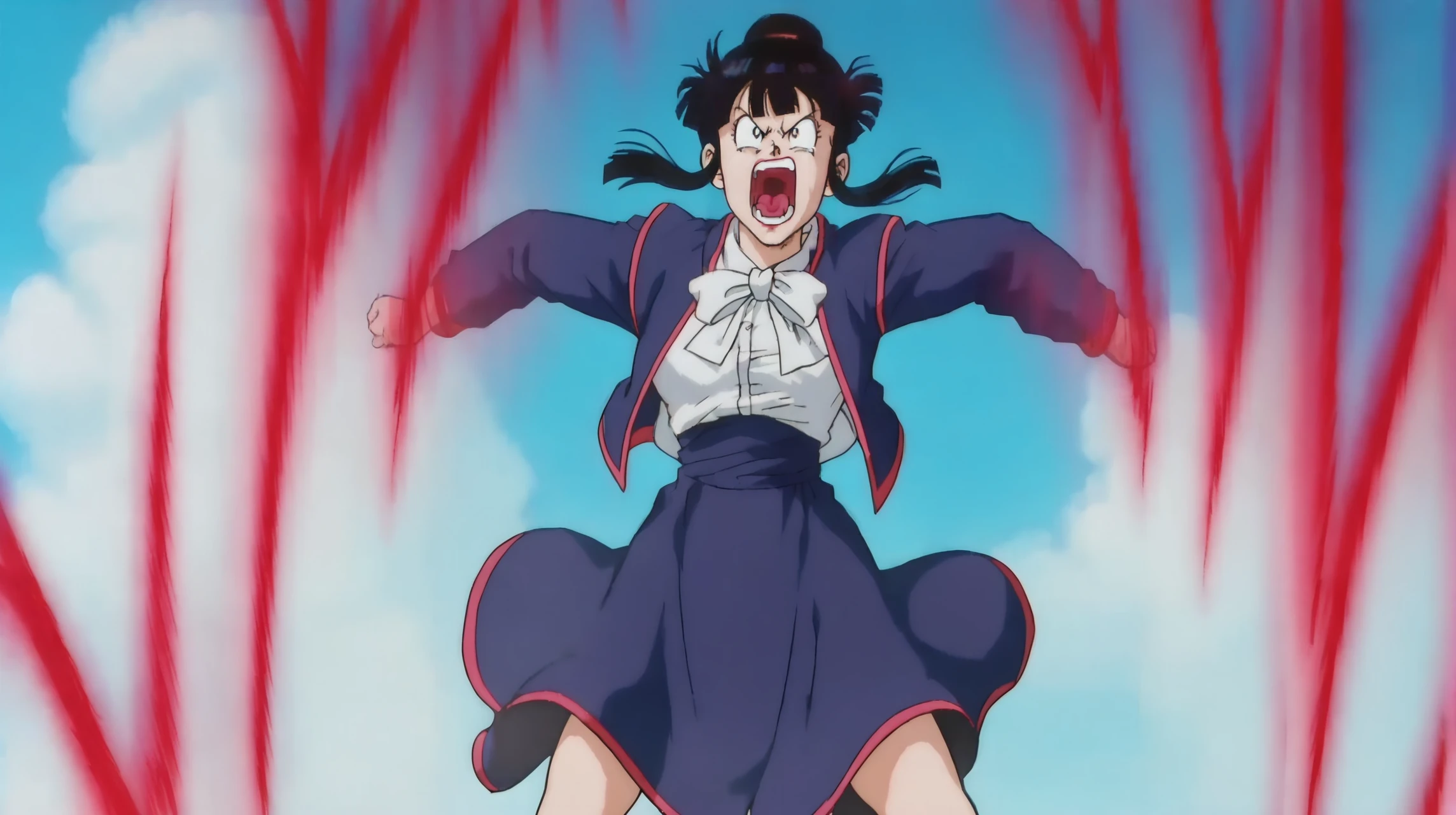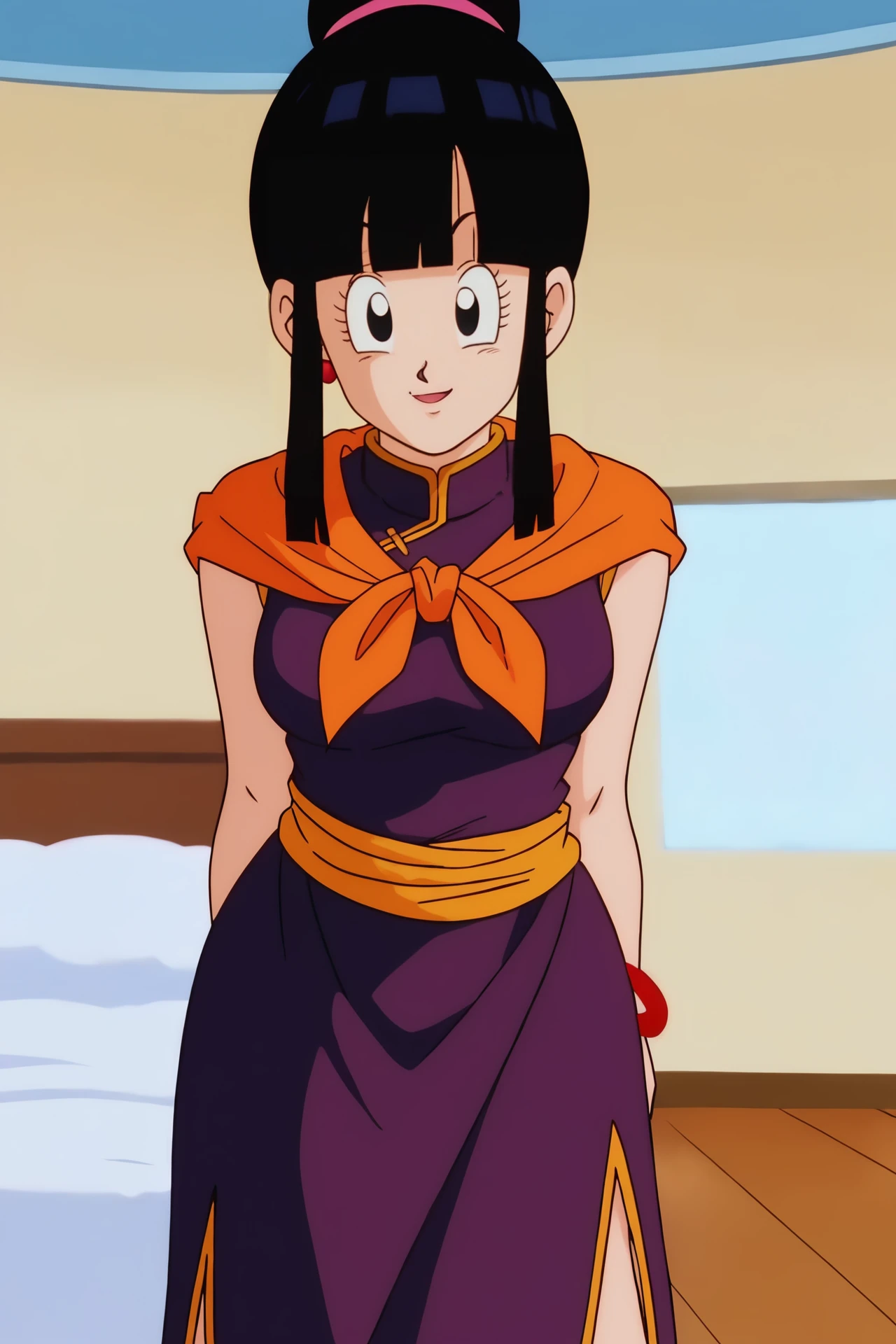 chi-chi, end of buu, black hair, eyelashes, hair bun, black eyes, single hair bun, earrings, long sidelocks