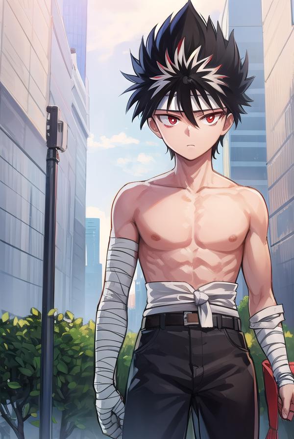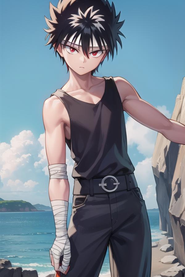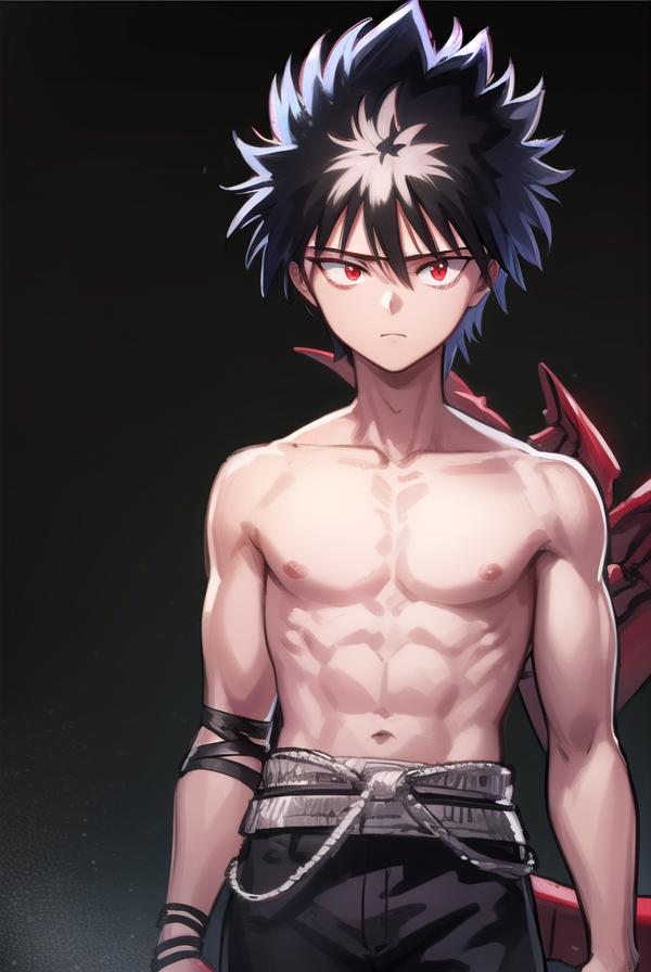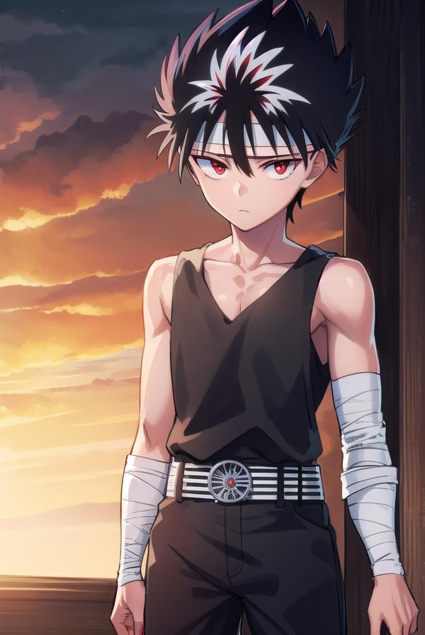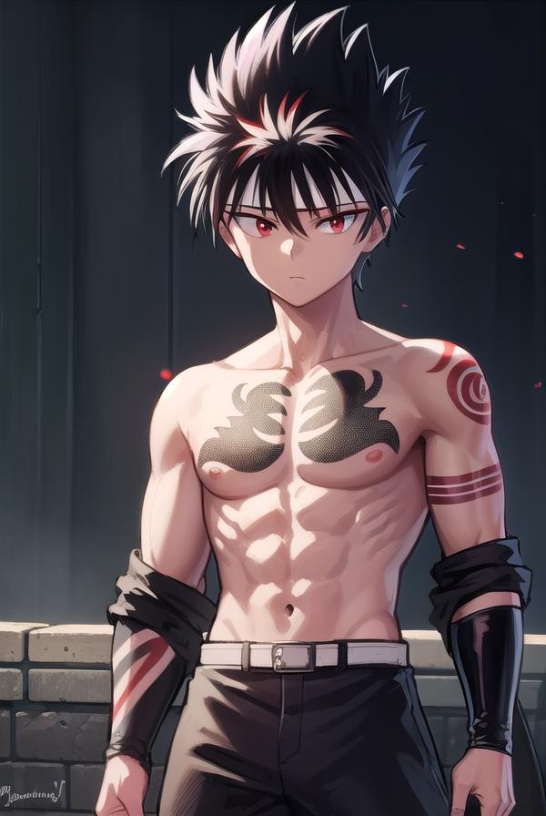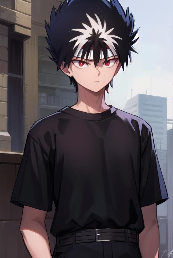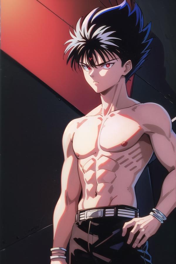 hiei, black hair, spiked hair, (red eyes:1.5), headband,