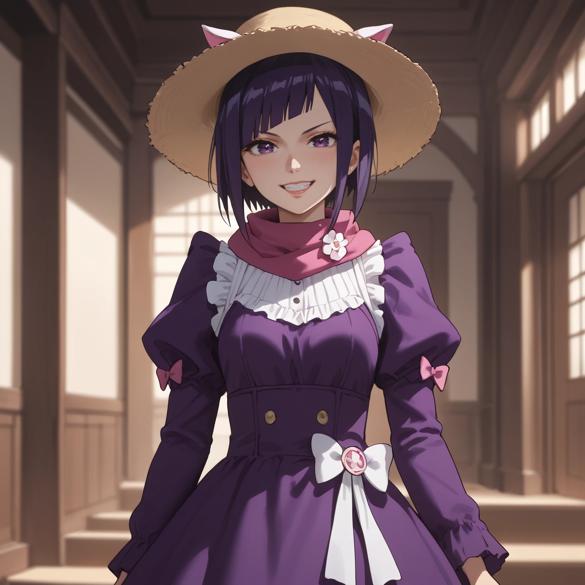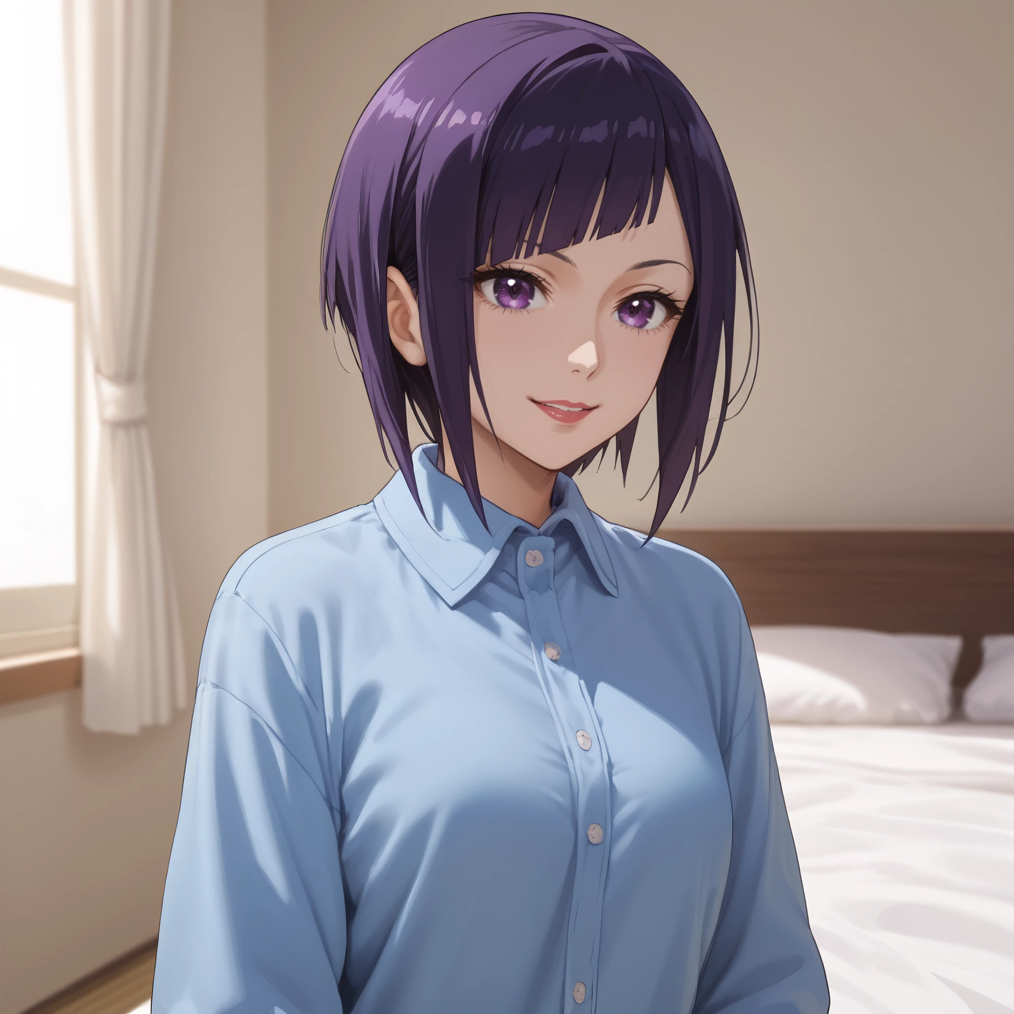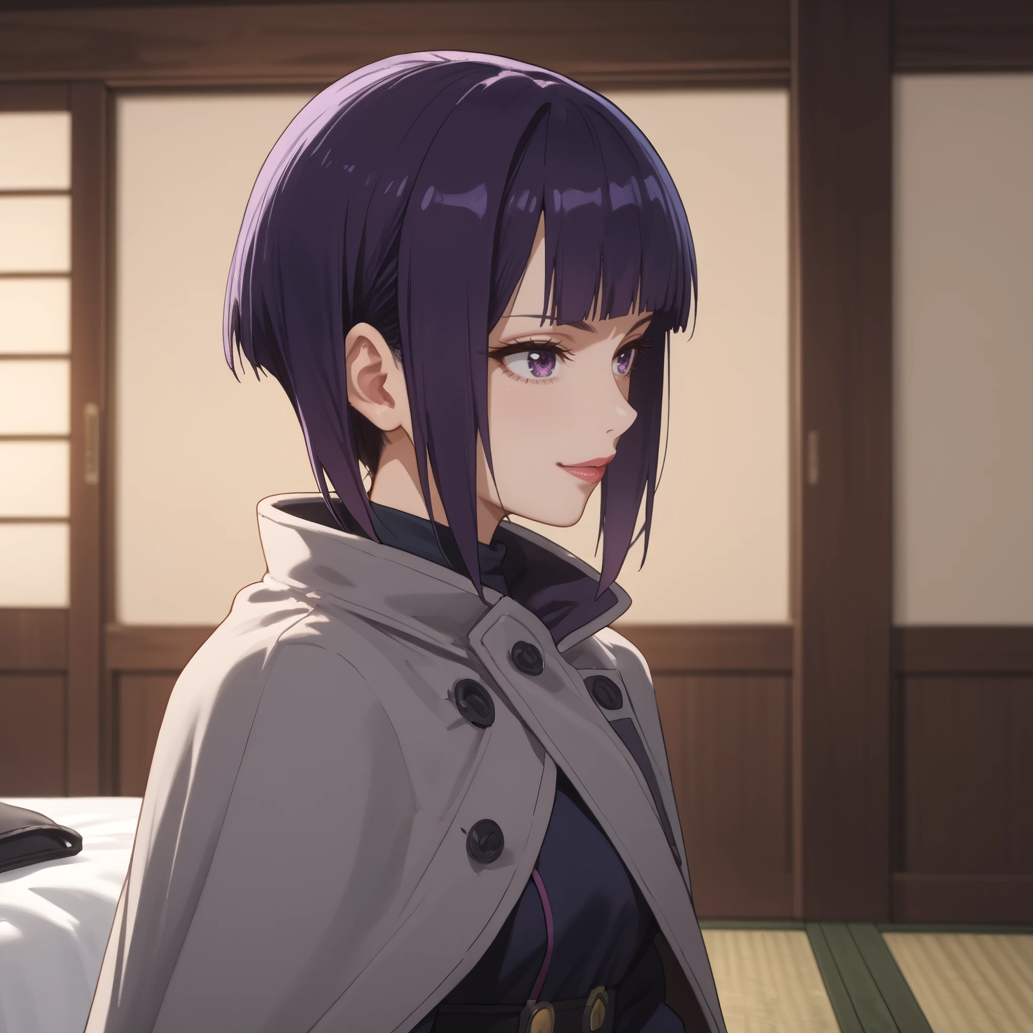 AMWRanko, short hair, bangs, purple eyes, purple hair, blunt bangs,