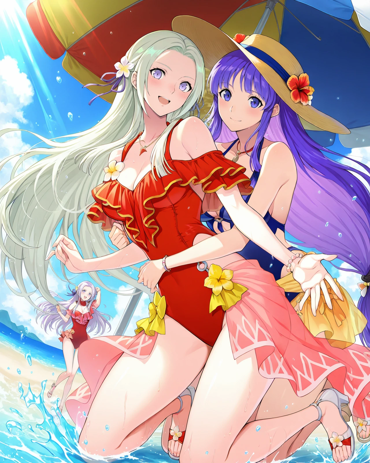 Edelgard_Fire_Emblem, 1girl, solo, long hair, blue eyes, blonde hair, purple eyes, white hair,