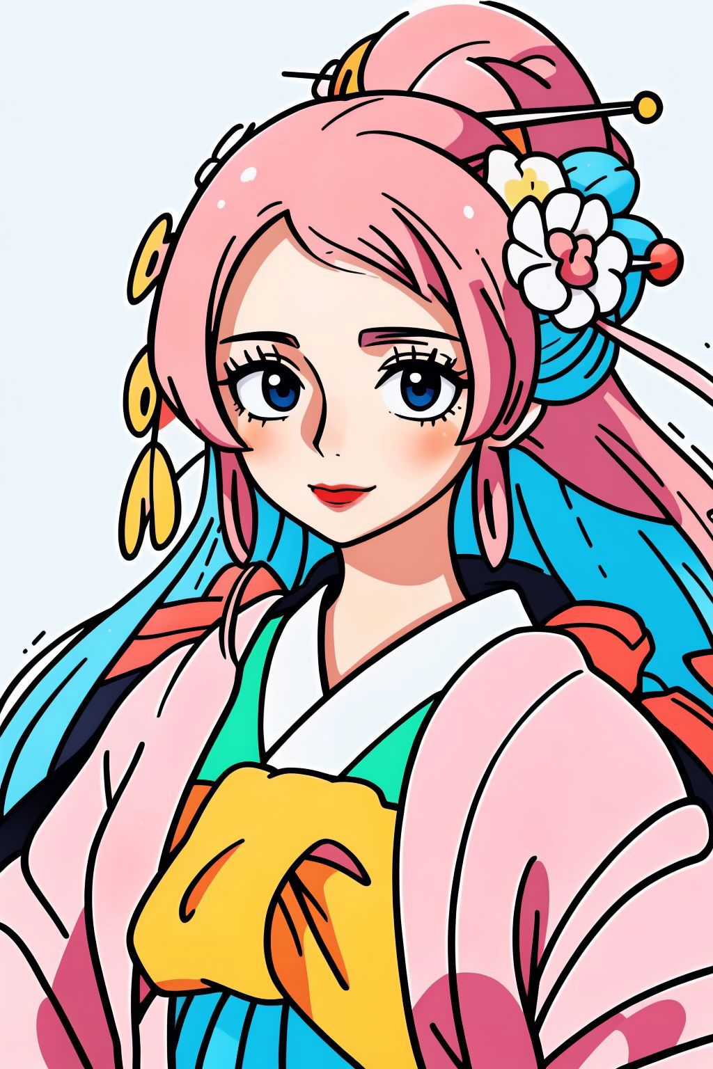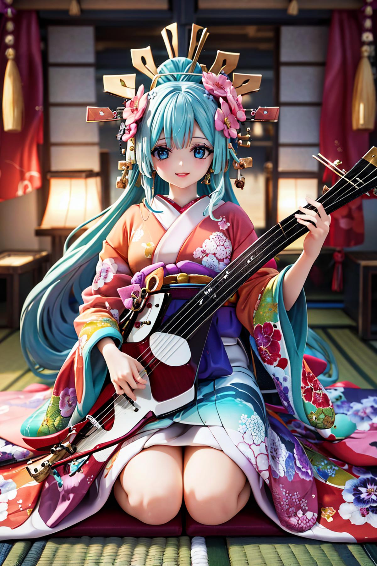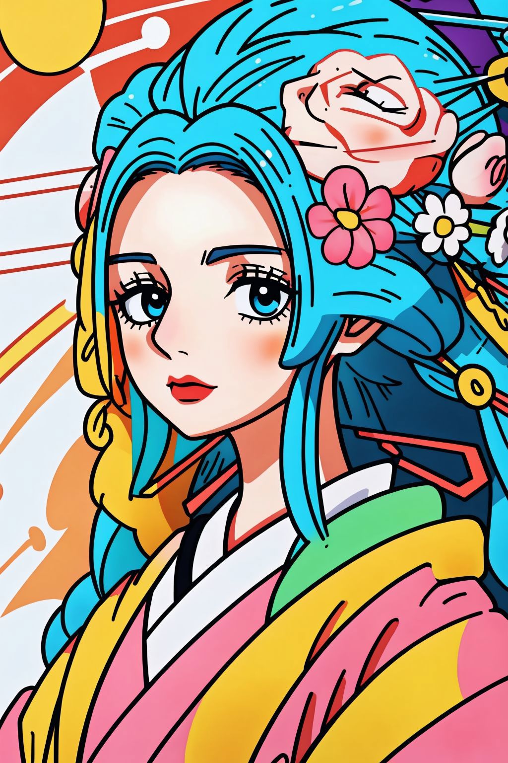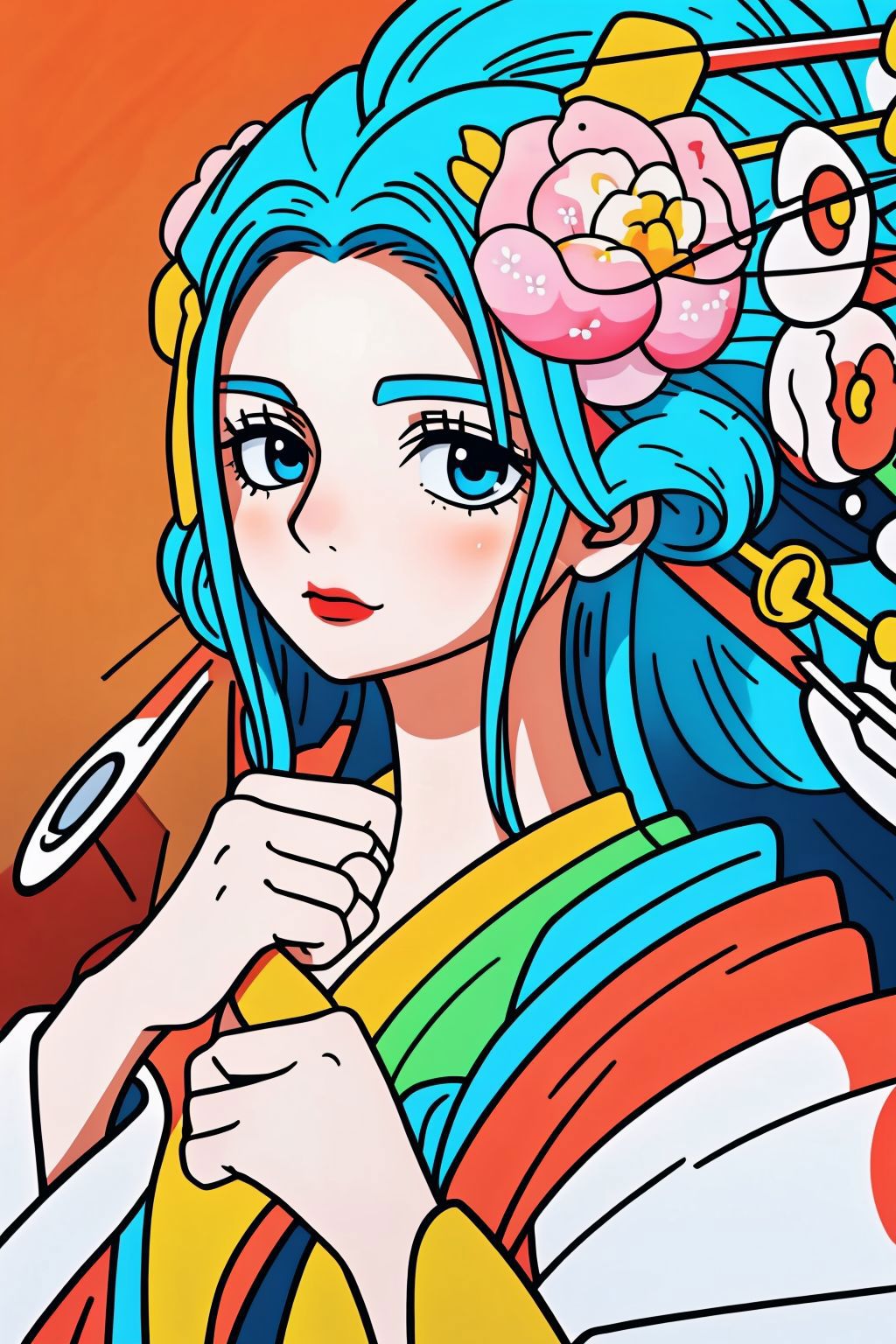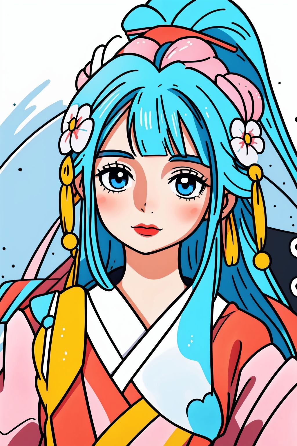 📌Prompt:Kozuki Hiyori, aqua hair, aqua eyes, long hair, hair ornament, flower ornament, hair flower, bangs, hair stick, hair rings