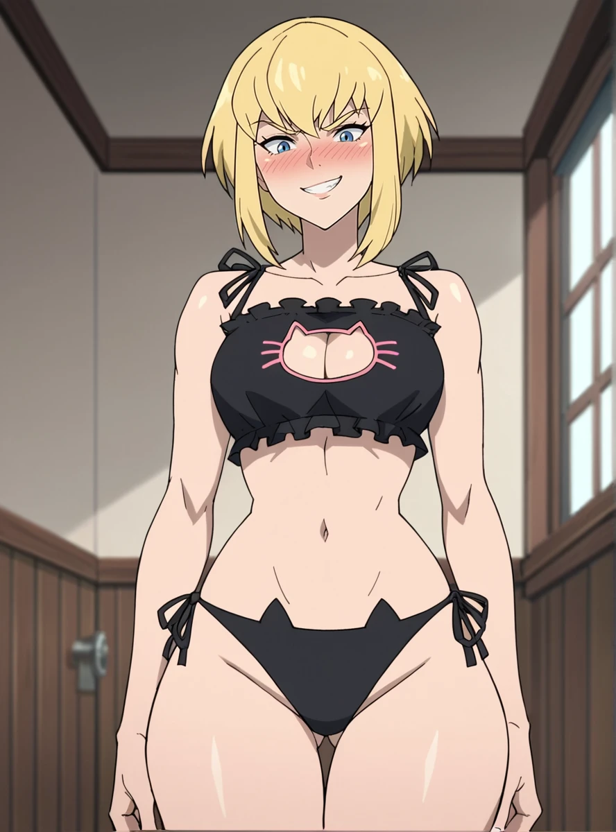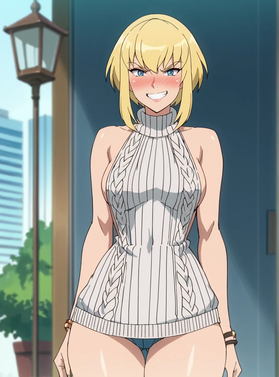 Main Prompts: 1girl, blonde hair, solo, short hair, , sidelocks, blue eyes,