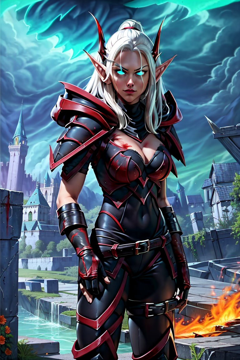 Rogue Bloodfang Tier 2 armor set from World of Warcraft. Works good with race LoRA's. Also works great with WoW / Azeroth Style LoRAs.