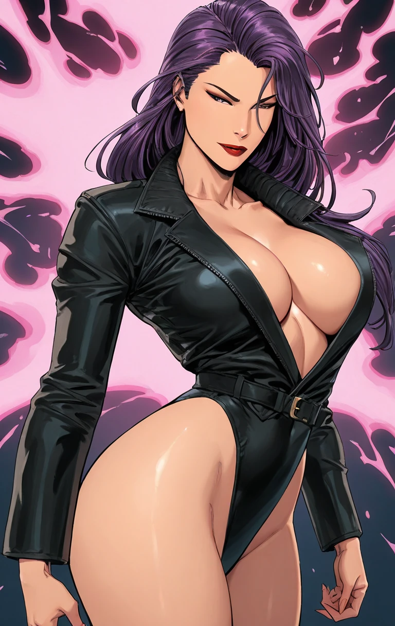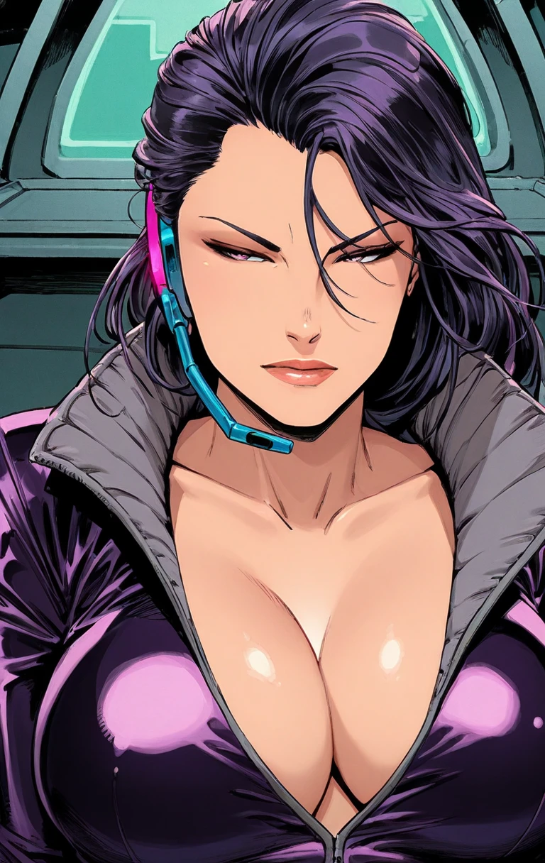 psyl0ck3, 1girl, solo, long hair, purple hair, purple eyes, solo, red lips,