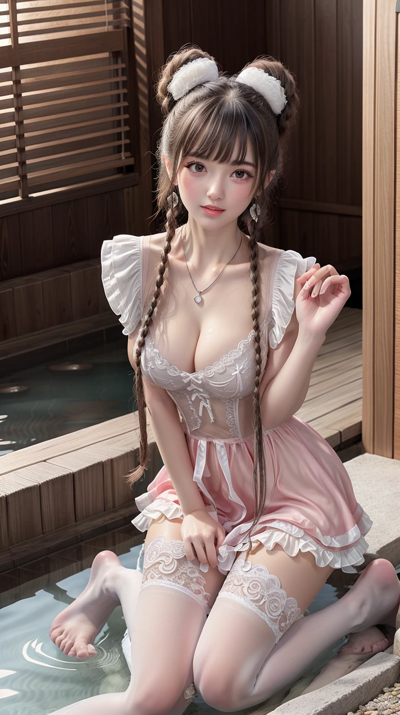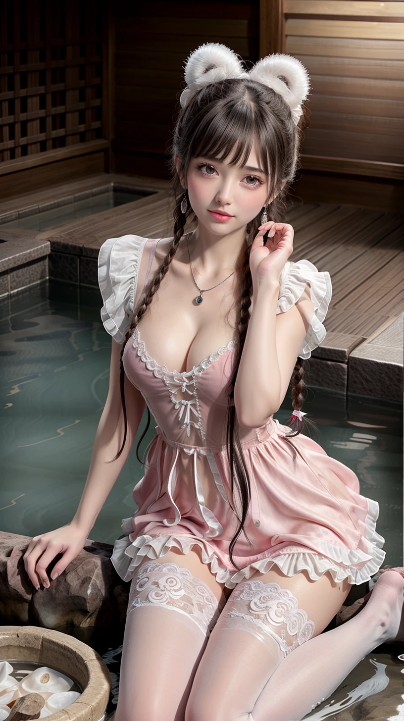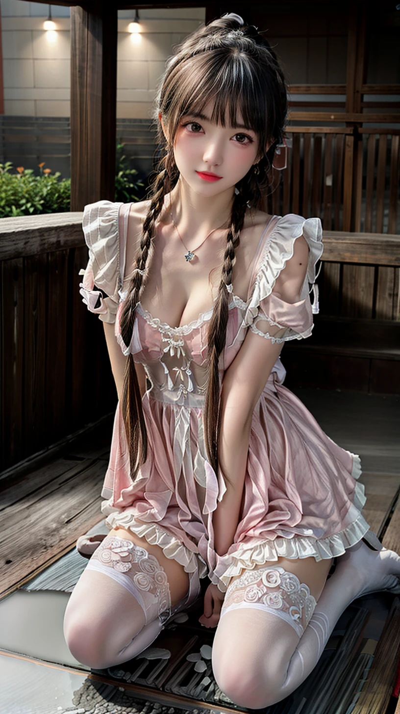 dress,white thighhighs,