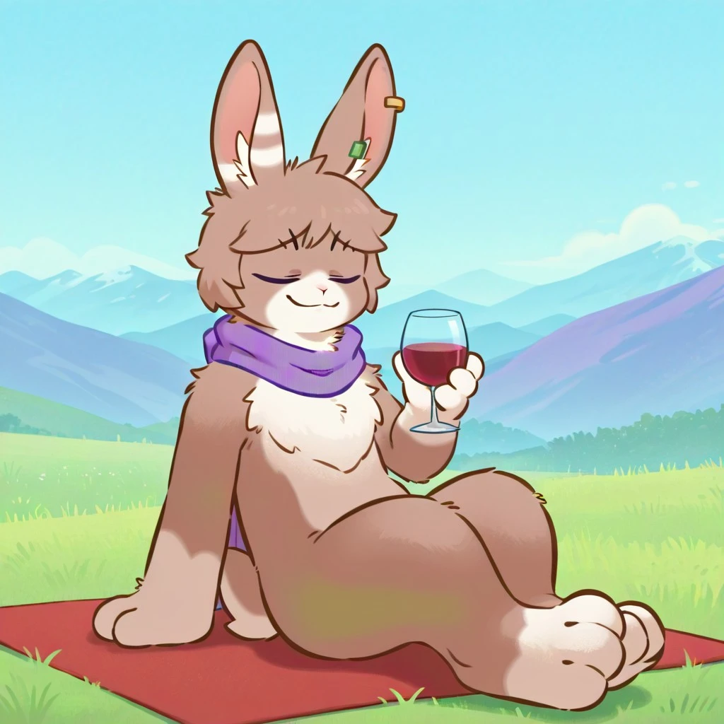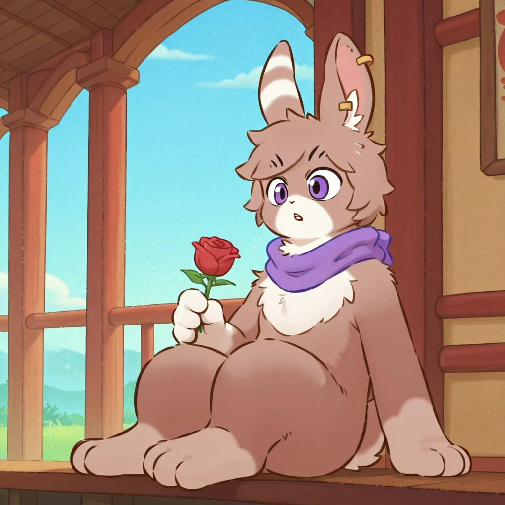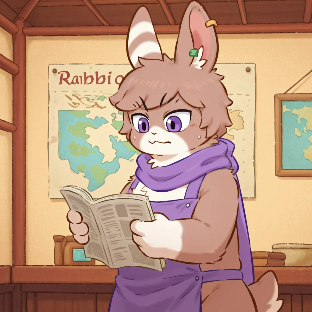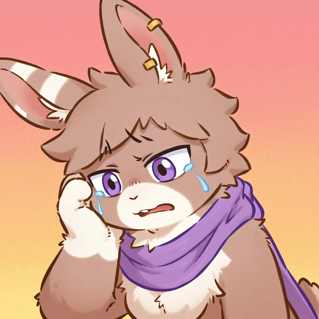 tag:Tu_Ye,animal ears,rabbit ears, scarf,1boy, single earring, purple scarf, rabbit, ear piercing, piercing, body fur, rabbit tail, rabbit boy,purple eyes,furry