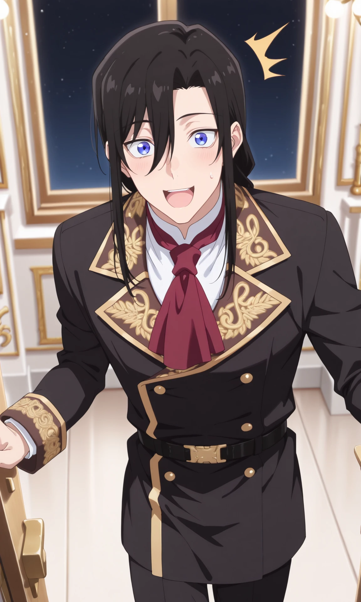 Trigger words are: Leonardo,blue eyes,black hair,long hair,long bangs,single thick braid,hair between eyes,