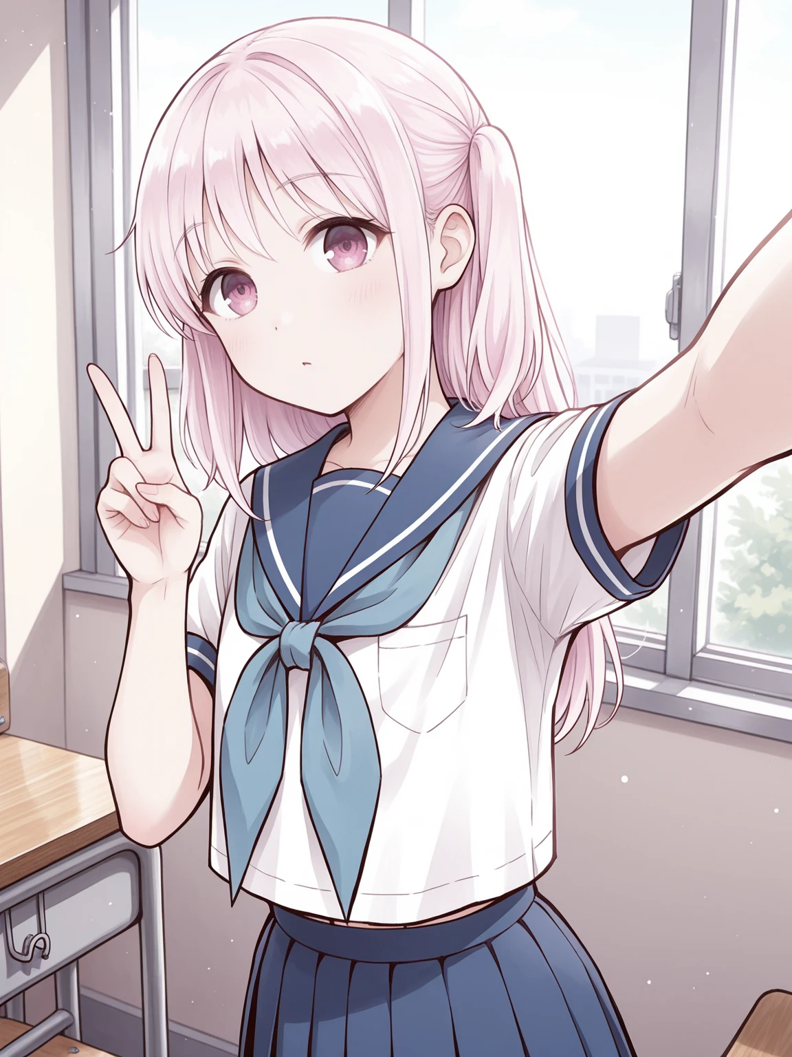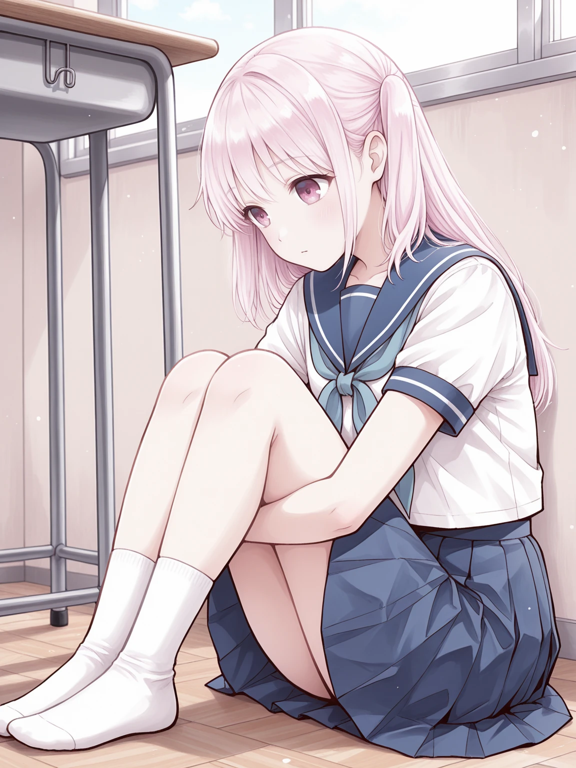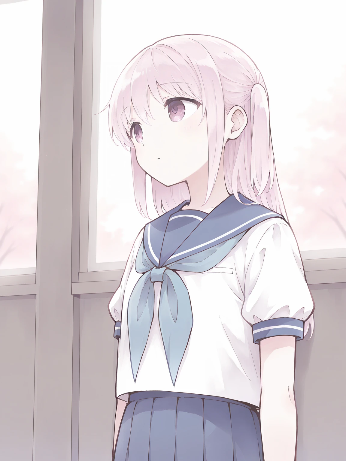 Outfit: serafuku, blue sailor collar, blue neckerchief, blue skirt, pleated skirt