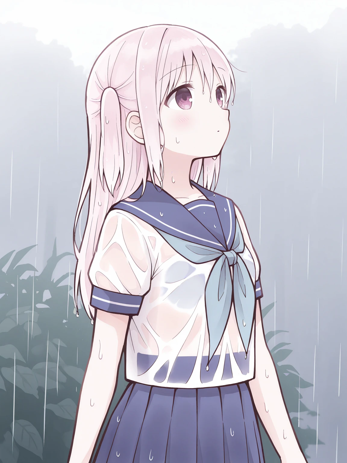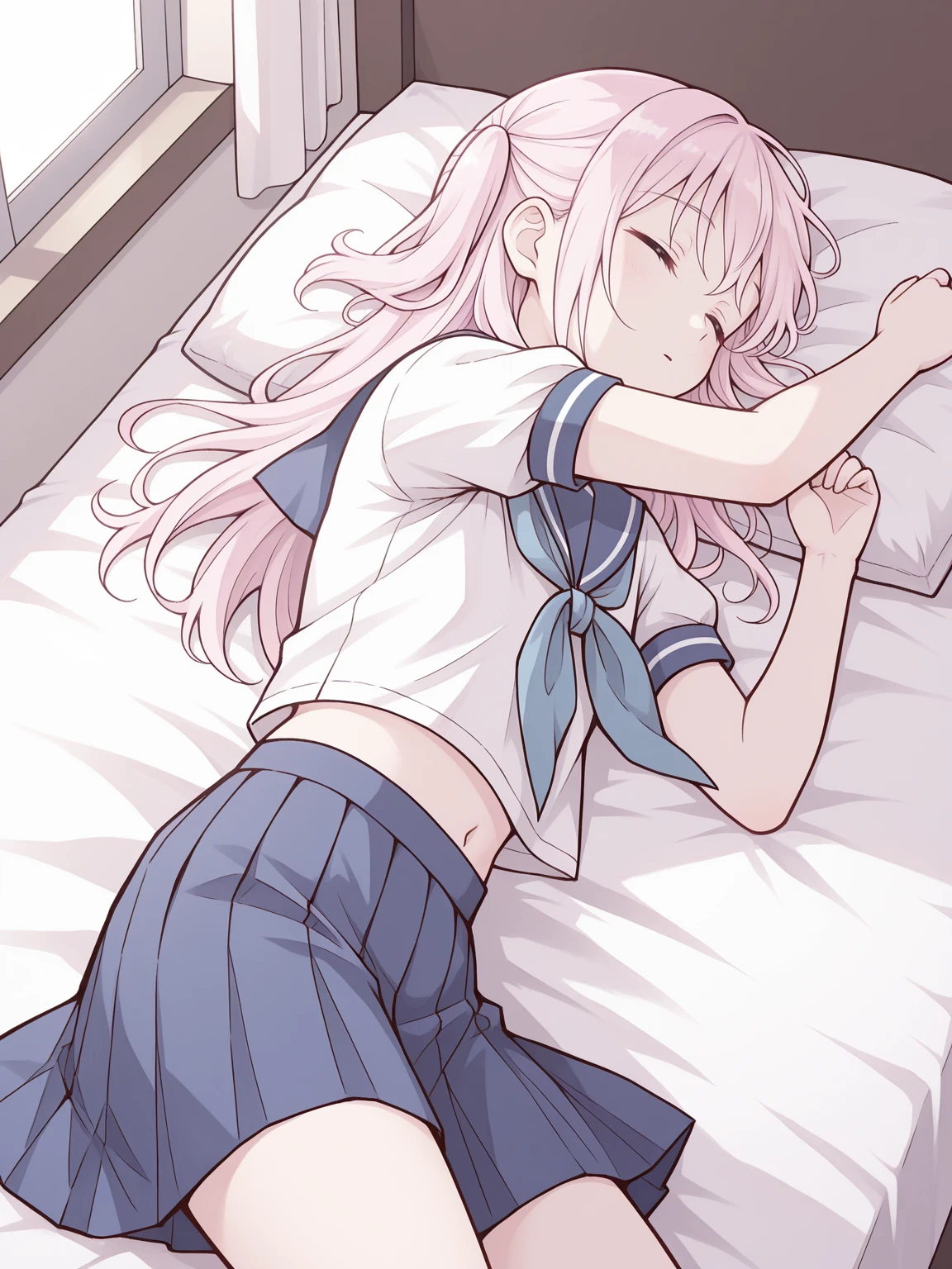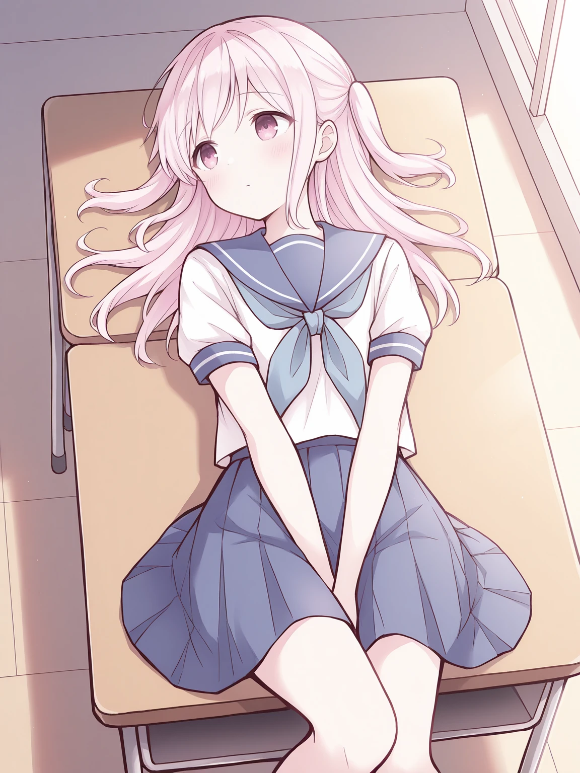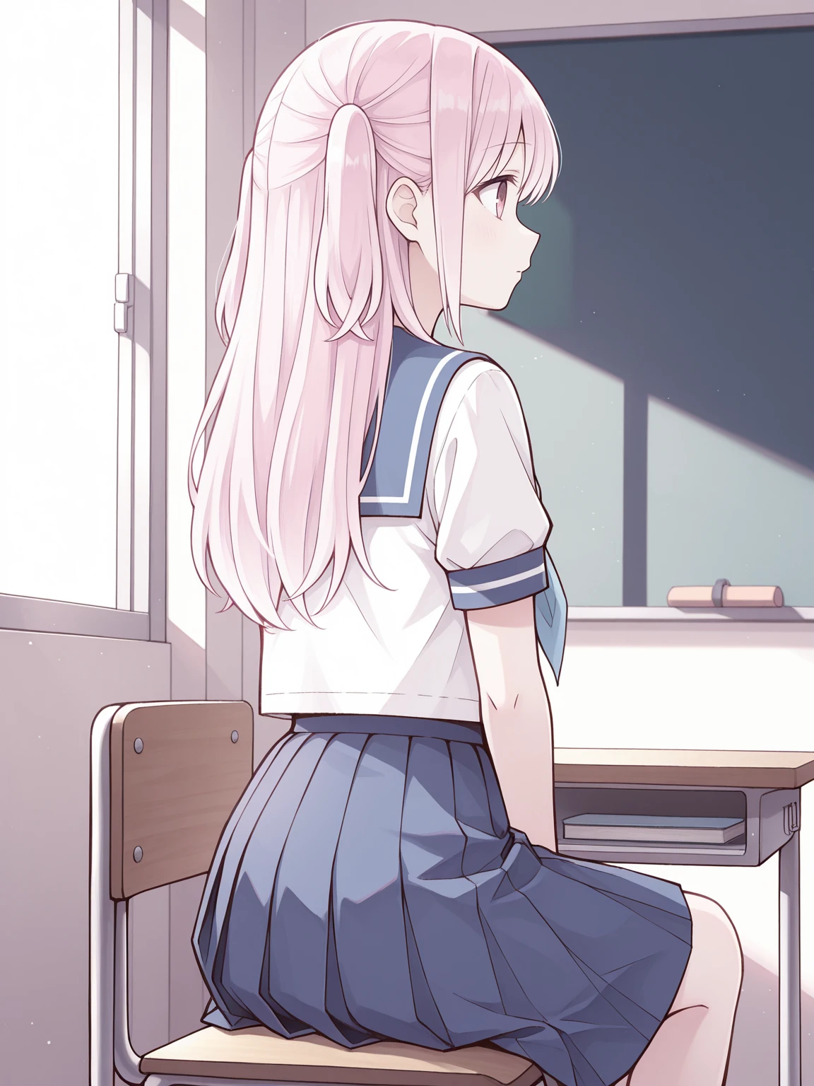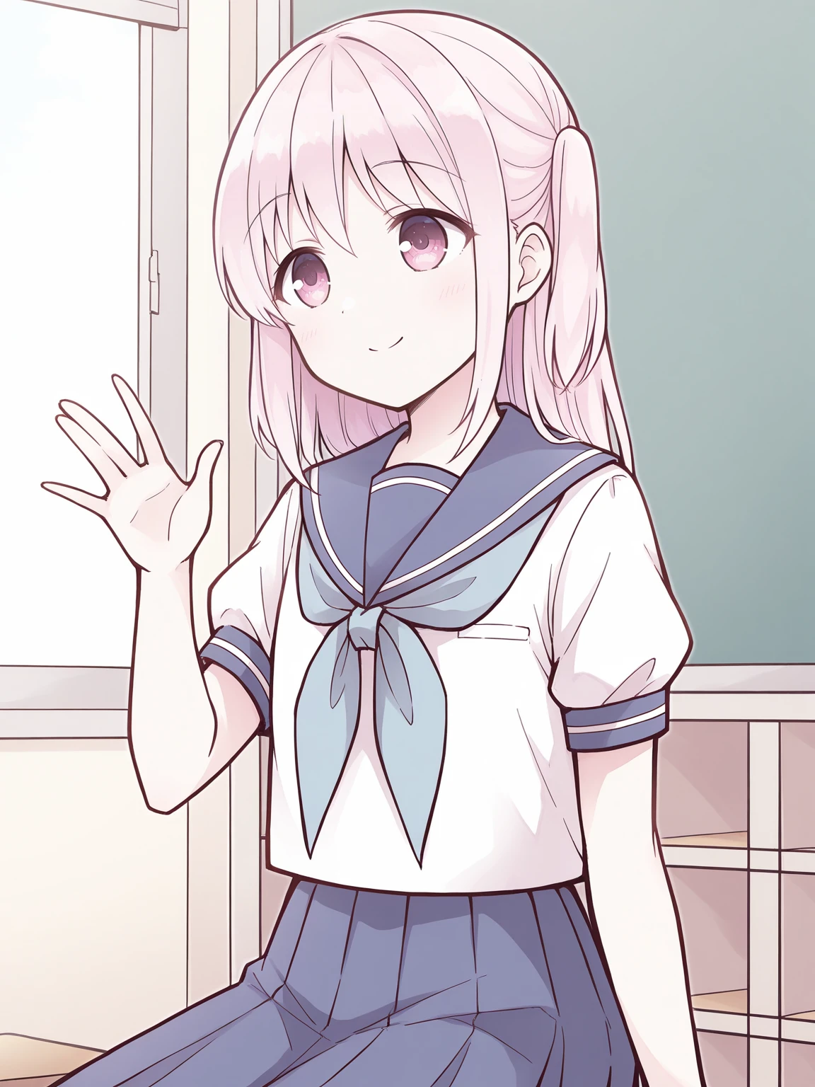 kashiwadasan, pink hair, long hair, two side up, pink eyes, flat chest
