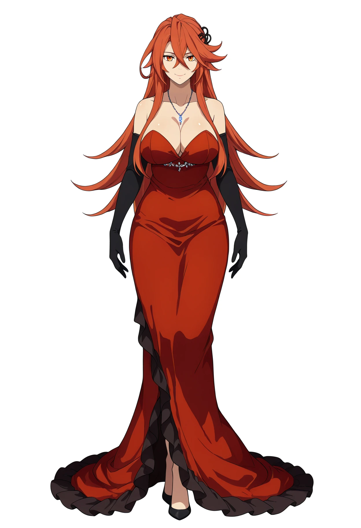 Dress prompts : red dress, black elbow gloves