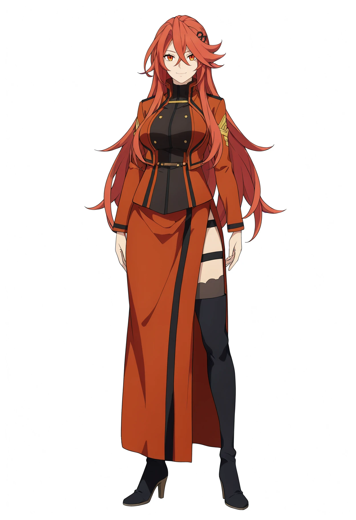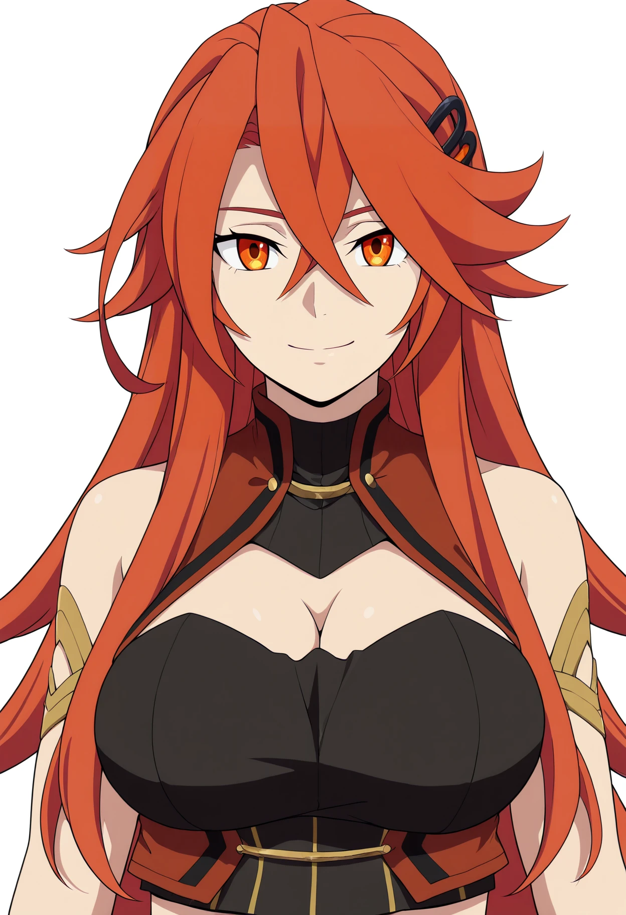 Basic prompts : 1girl, margaretodius, long hair, hair between eyes, hair ornament, orange eyes, red hair