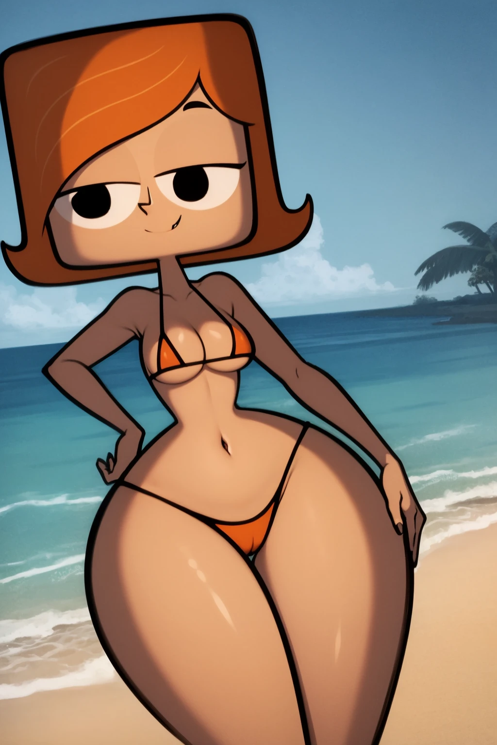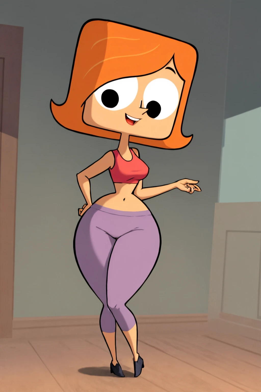 Basic prompts : 1girl, orange hair, short hair, black eyes, wide hips