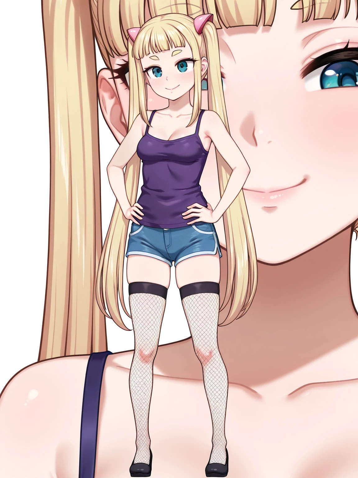 konoha \(magical girl konoha\), purple camisole, exposed ???????, fishnet legwear
