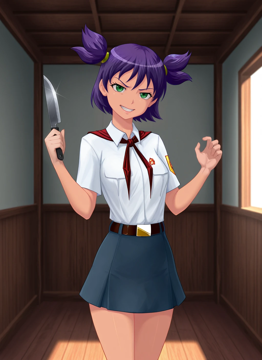 Ulyana: svus, blue eyes, red hair, low twintails, long hair, tan