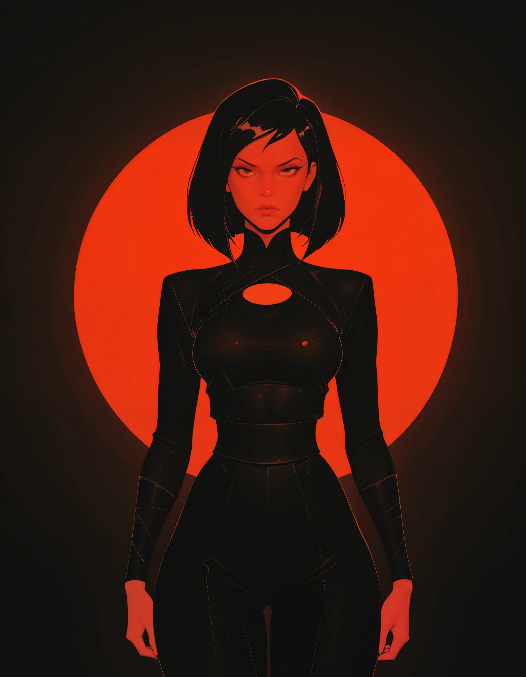 additional tags: asian, 1girl, black hair, breasts, short hair, solo, red hairband, black eyes, brown eyes, lips, anime, martial_arts_uniform, cartoon