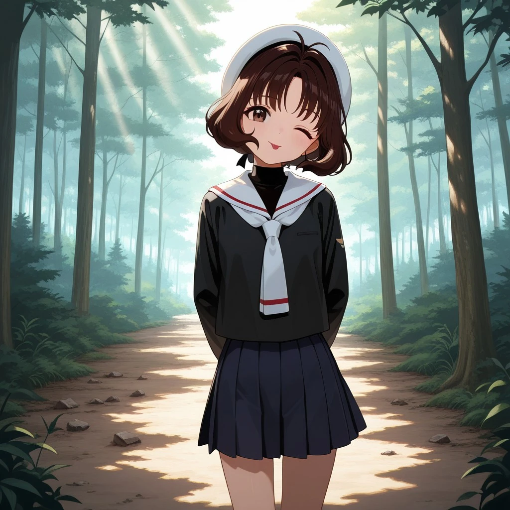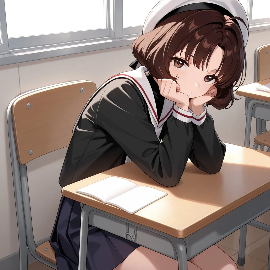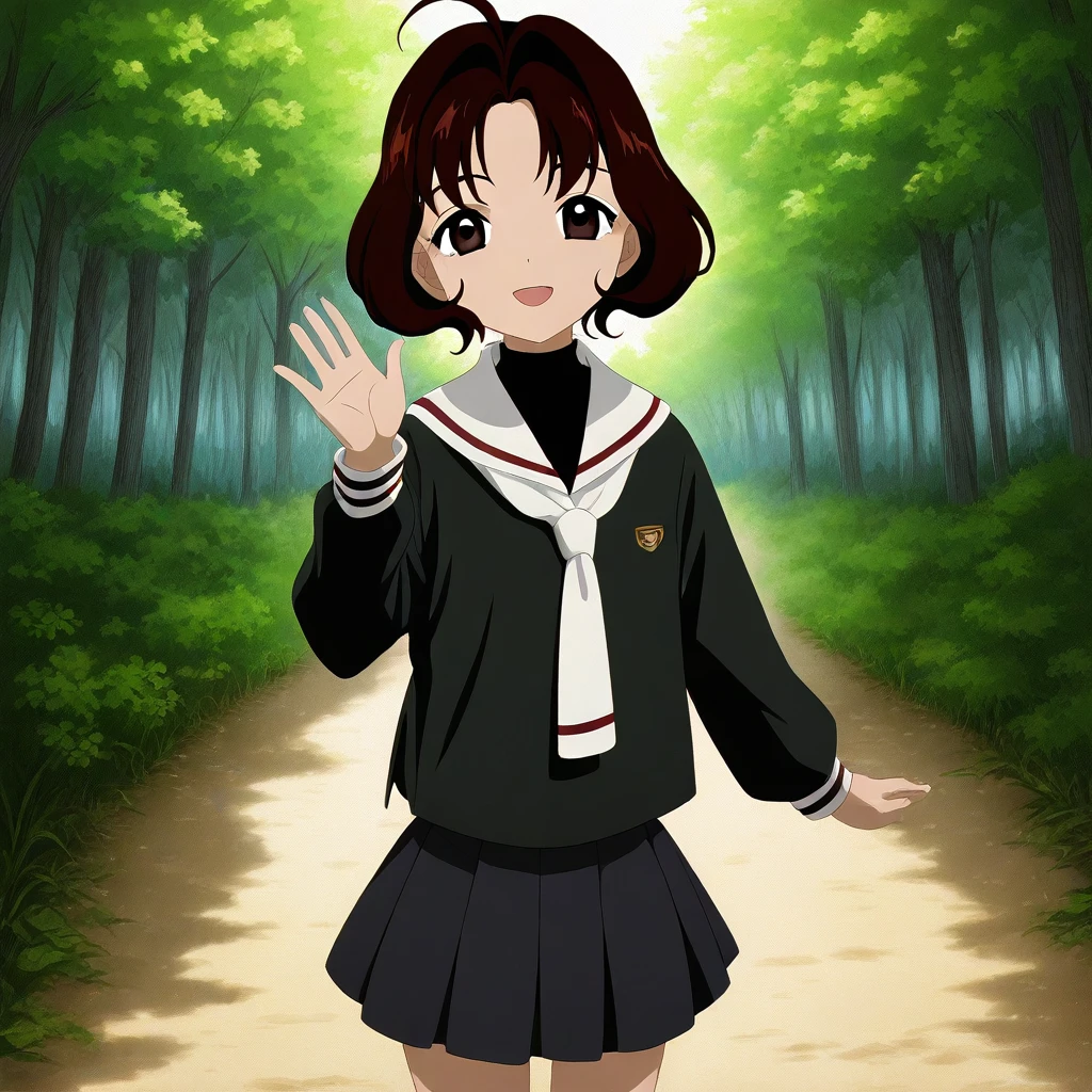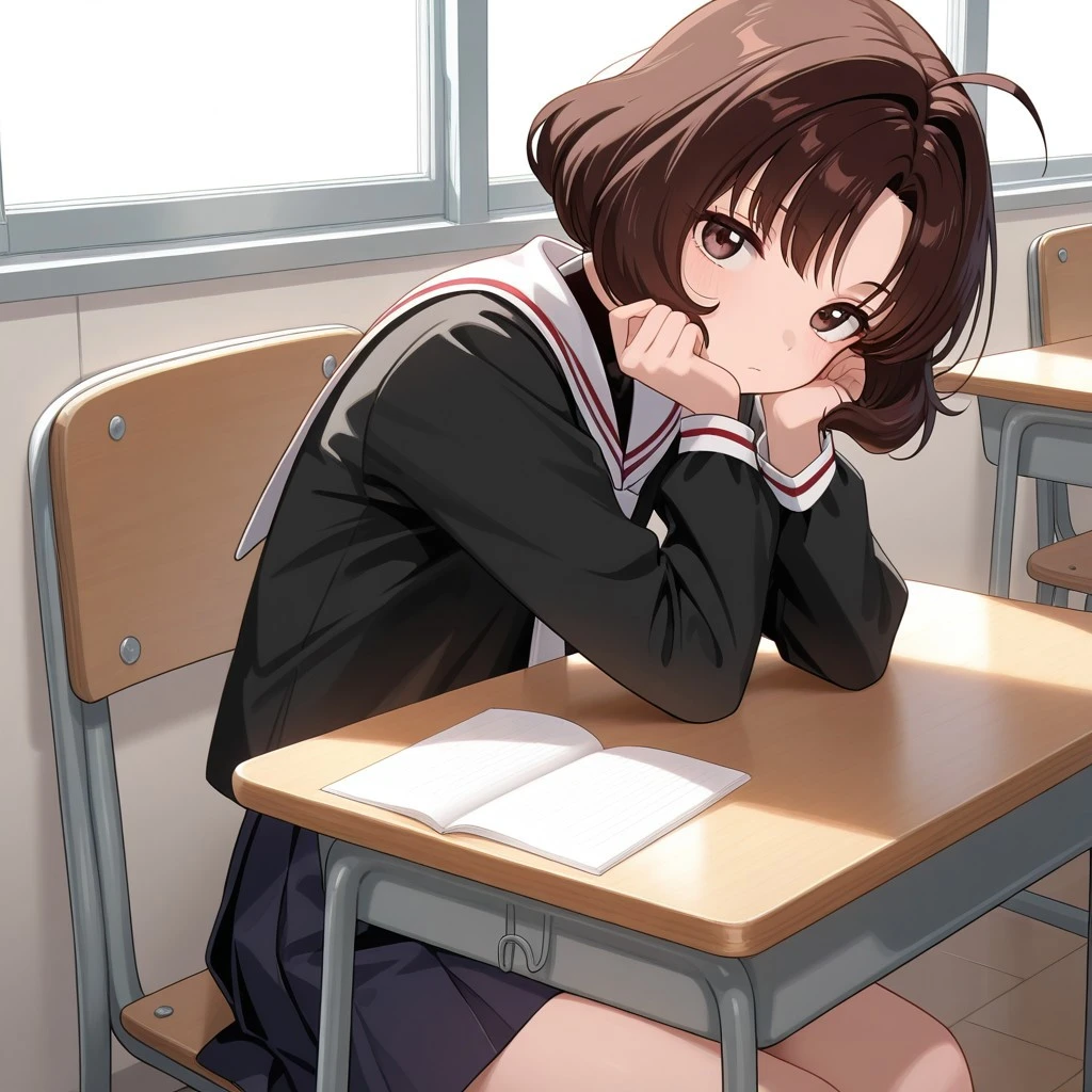 rika_cc, brown hair, short hair, brown eyes, school uniform, skirt