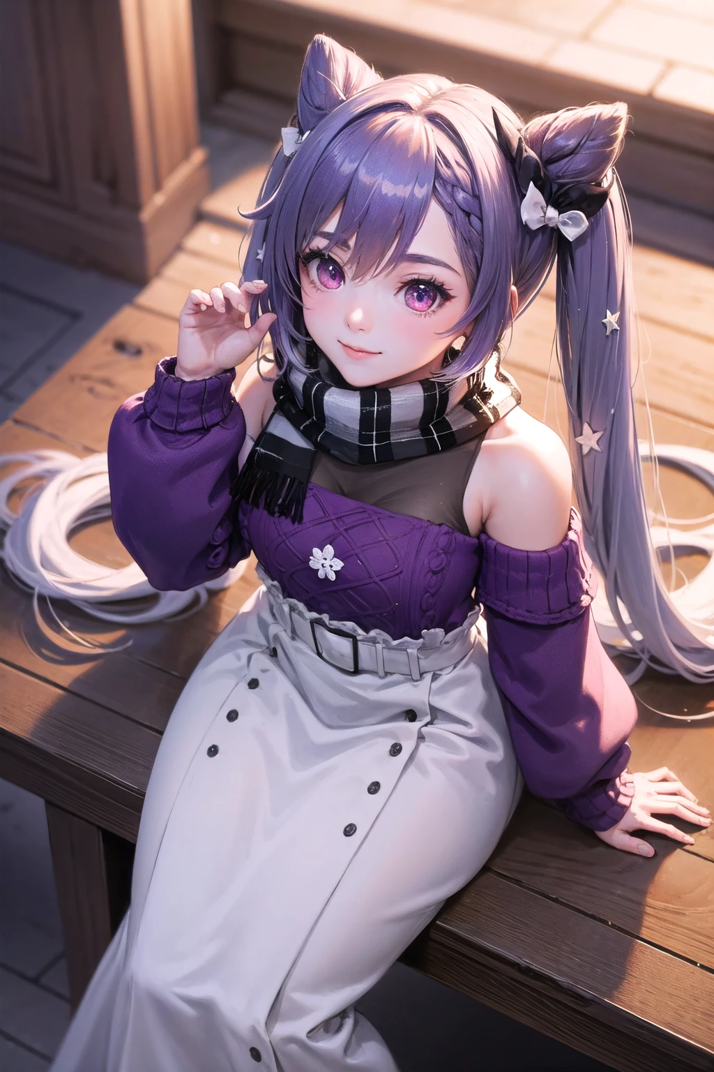 Helper: twintails, purple hair, purple eyesuse these to add missing details if model struggles to get them right