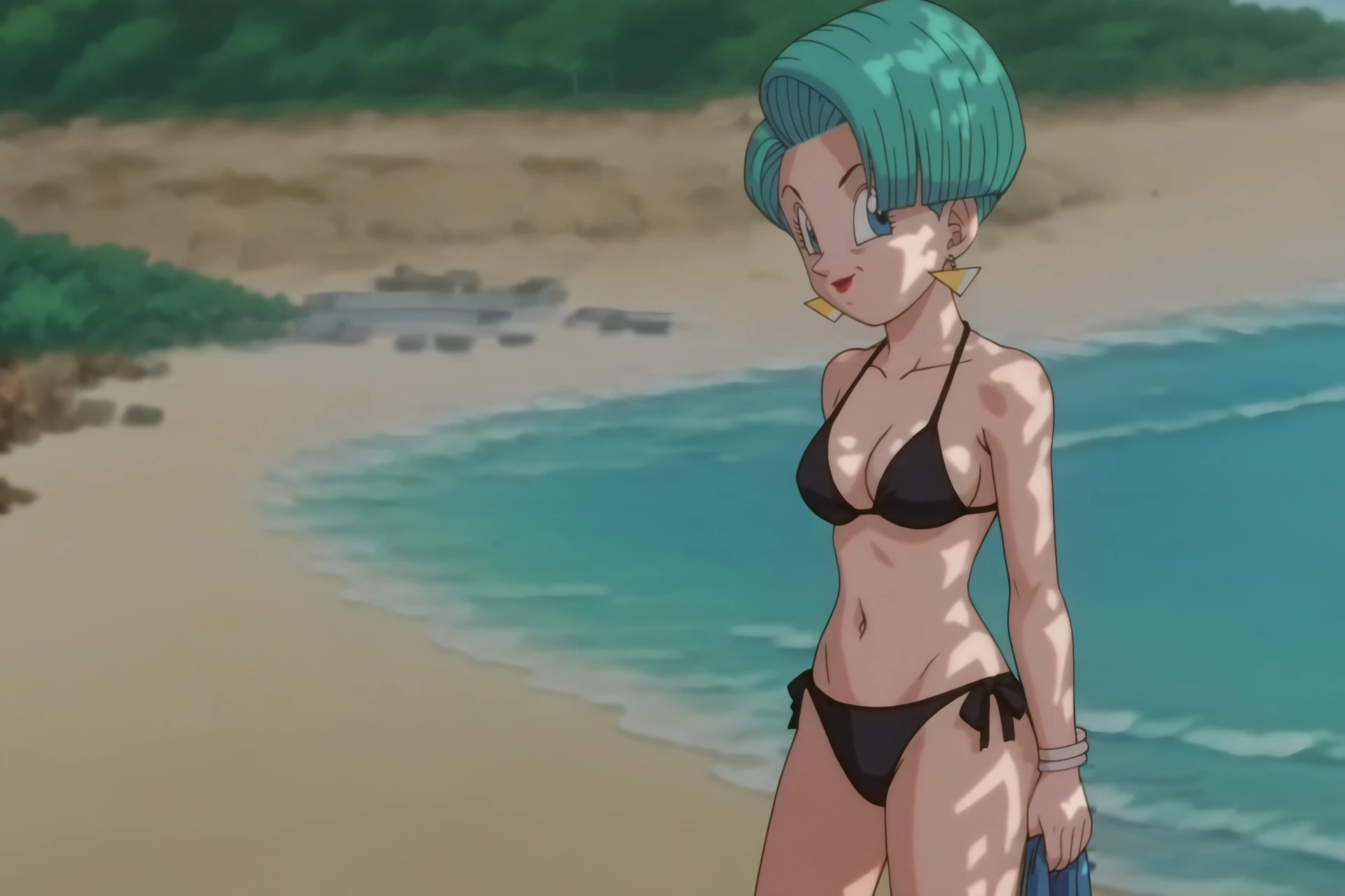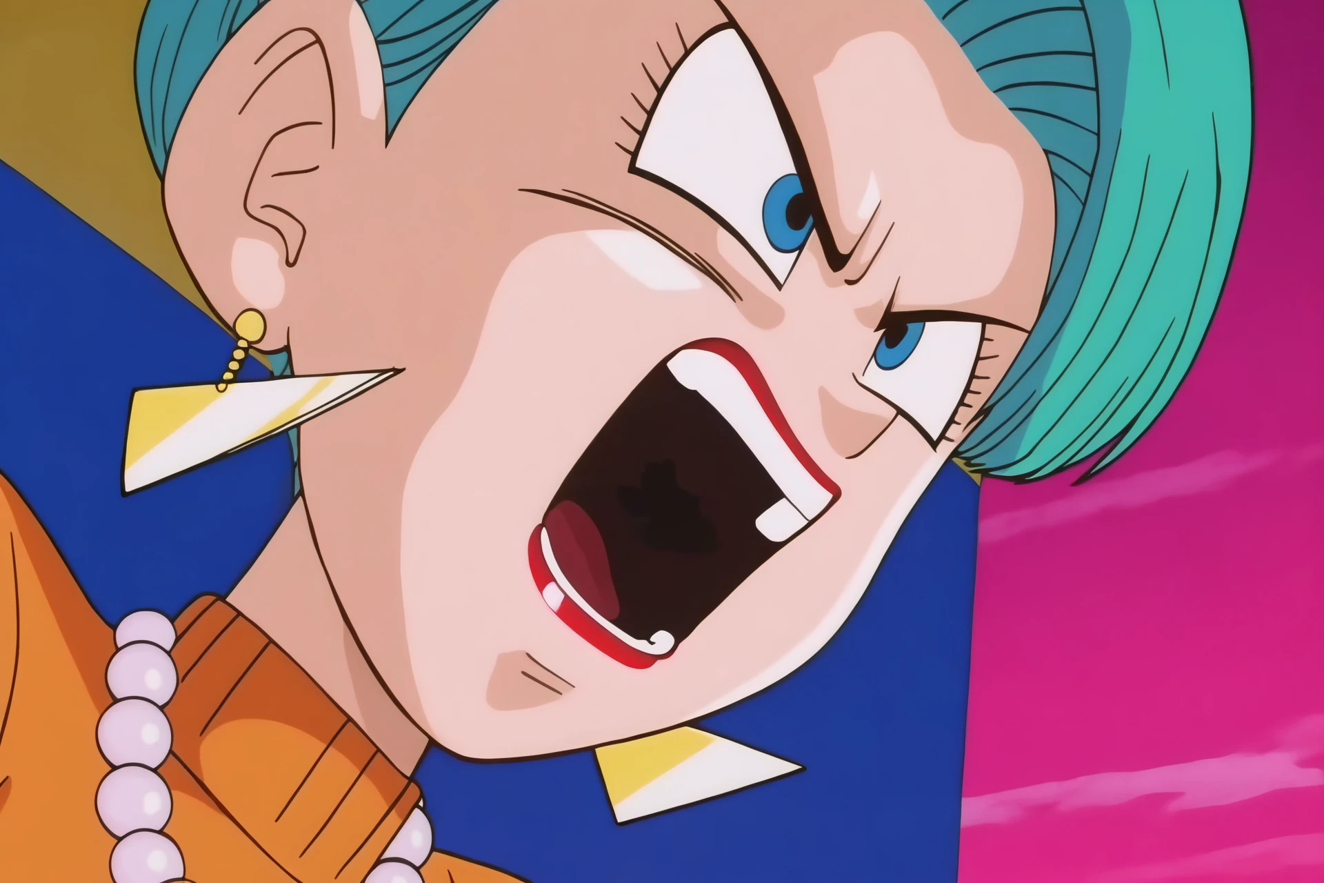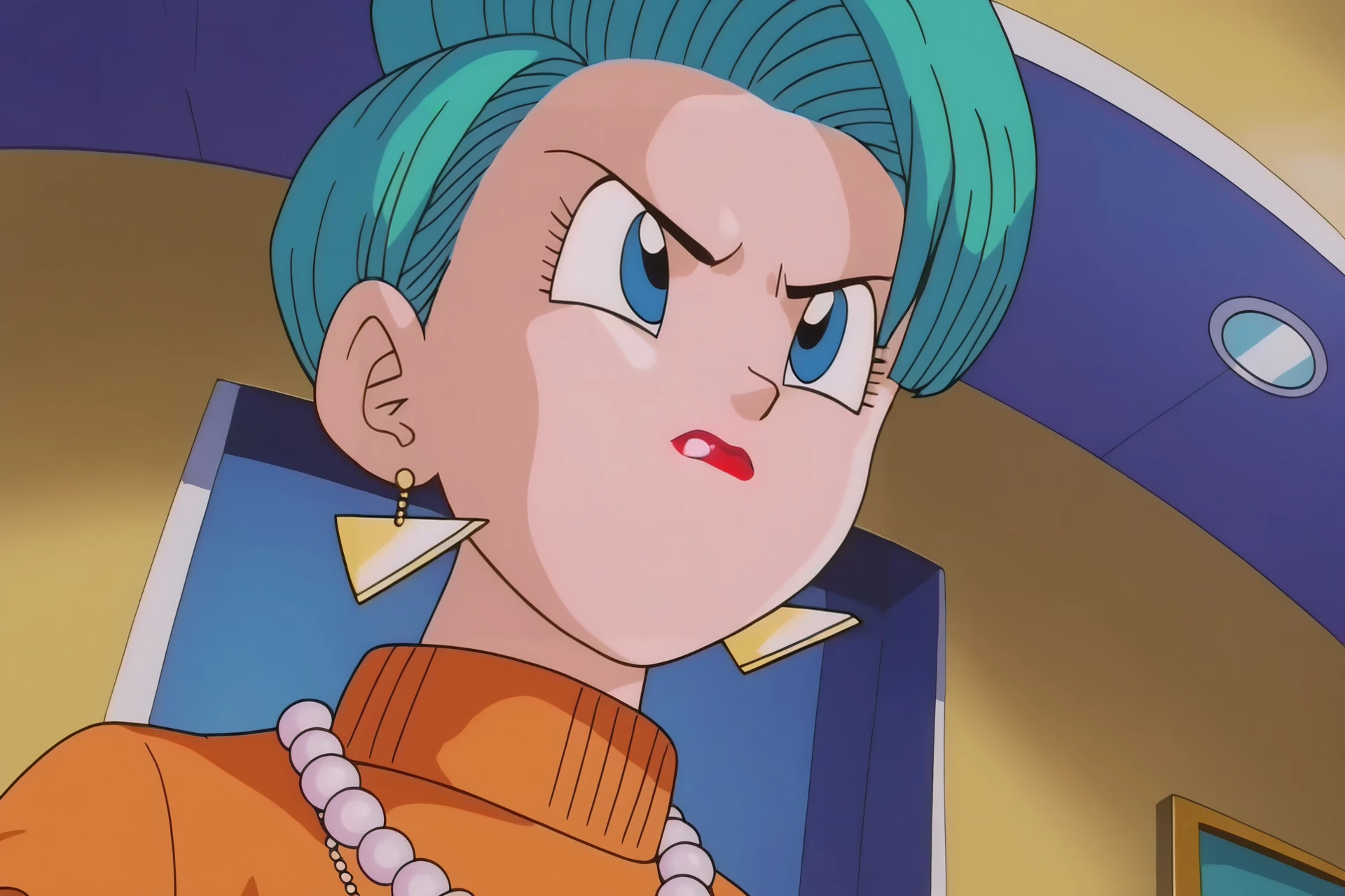 bulma, short hair, blue eyes, aqua hair, makeup, lipstick,