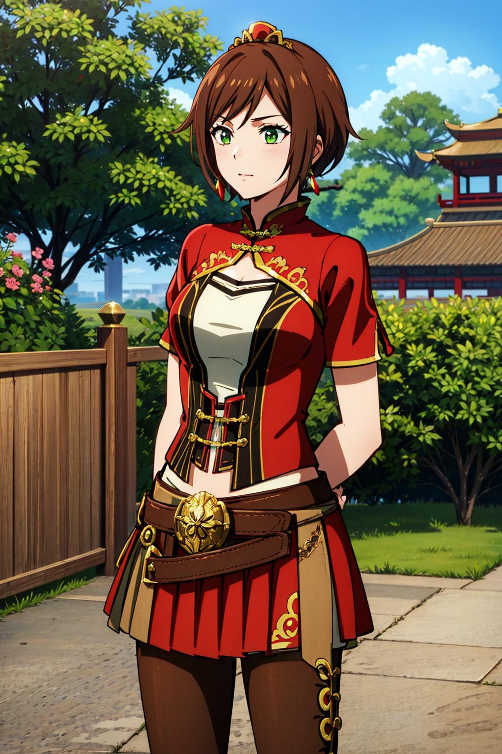 About the LoRA, her appereance is sunshangxiang, brown hair, green eyes, short hair, swept bangs. As always, I'll leave examples in the gallery, I didn't inpaint anything so there's always room for improvement. All the pictures are made with weight 1, except when I needed to change the colors of the clothes where I went to 0.9. Use realisticas negative as a bit of cosplay was used.