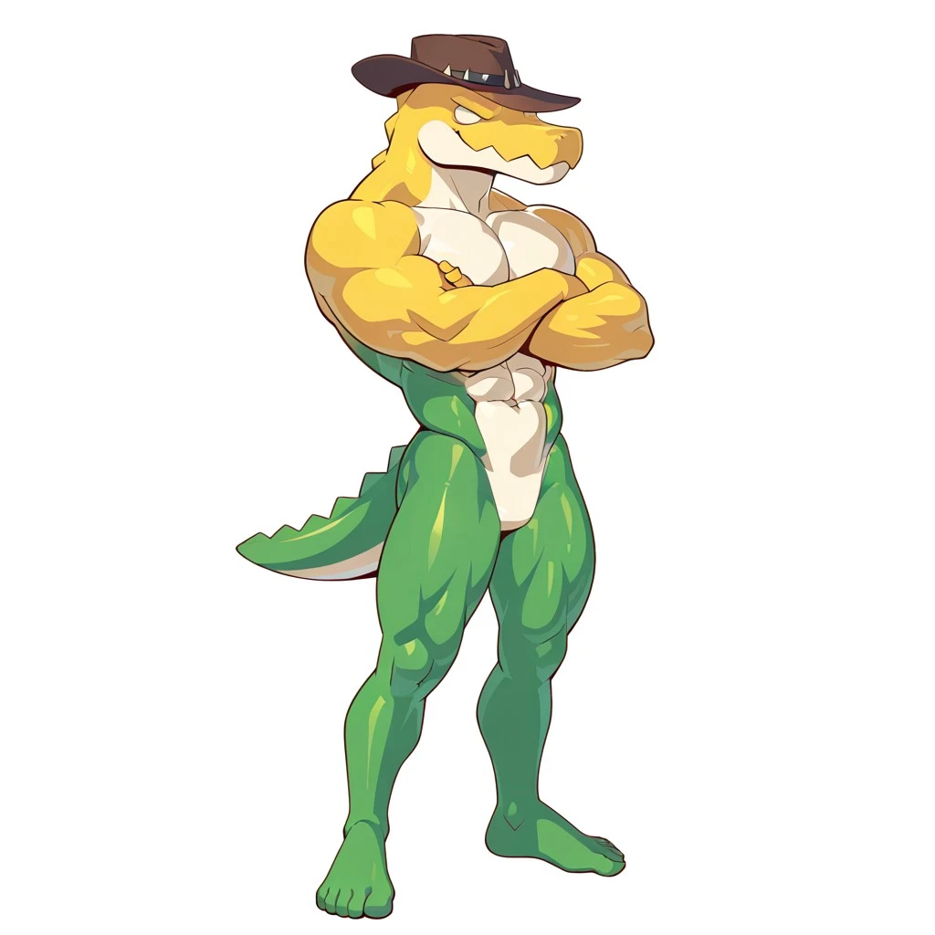 (anthro crocodilian, gummy creature, blank eyes, no pupils, spikes on back)